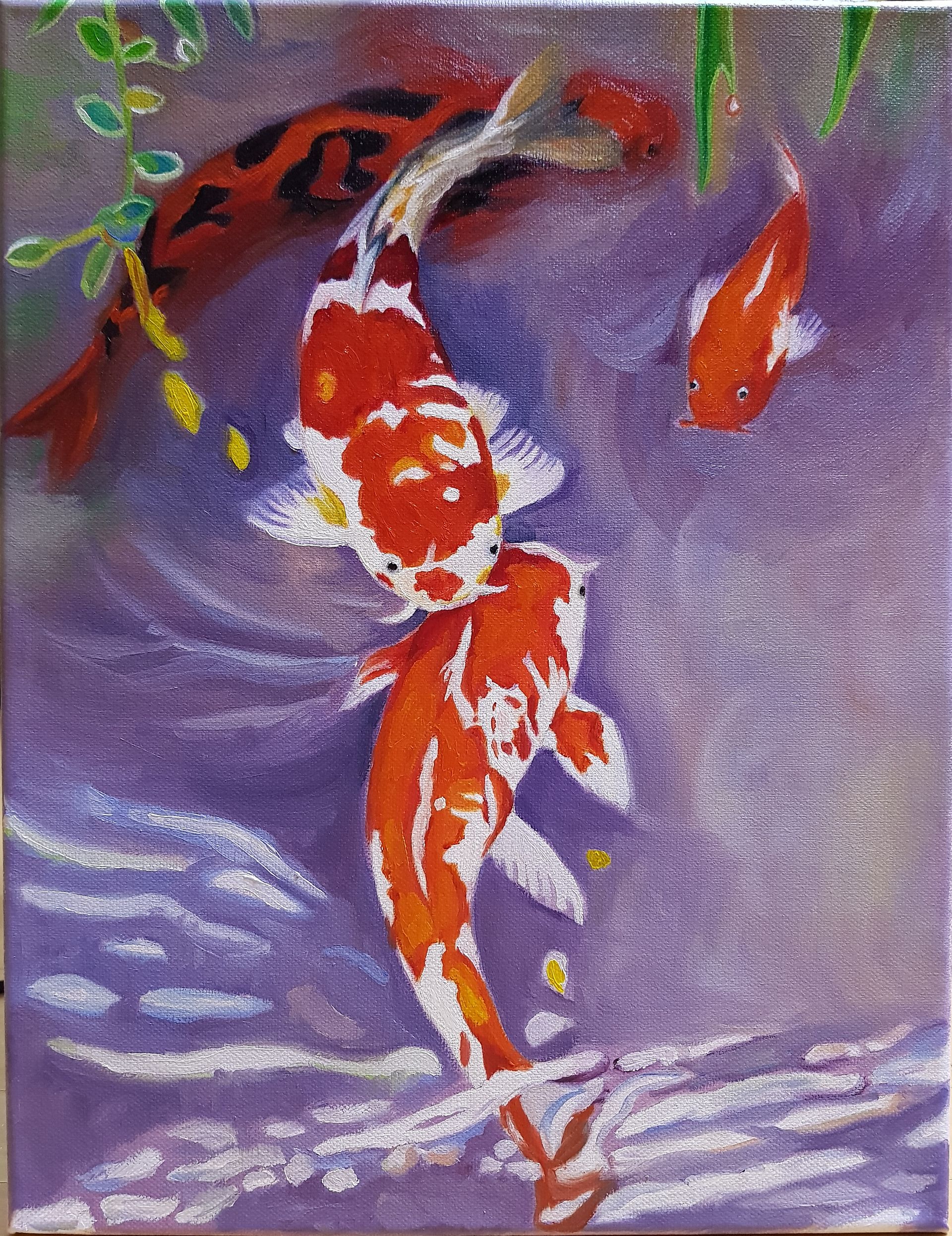 안녕하세요~유화 초급과정을 끝내고 중급 들어가기전 작품별 강의 중 잉어도를 그려봤어요~비단잉어가 참예뻐요~잉어보다 배경의 한지느낌을 살려그리는게 더 어렵네요~선생님따라 그리긴했는데 좀 어색해보이는것 같기도하네요 ㅎ~조언부탁드립니다~행복한 설연휴 되시고 새해 복 많이받으세요~^^