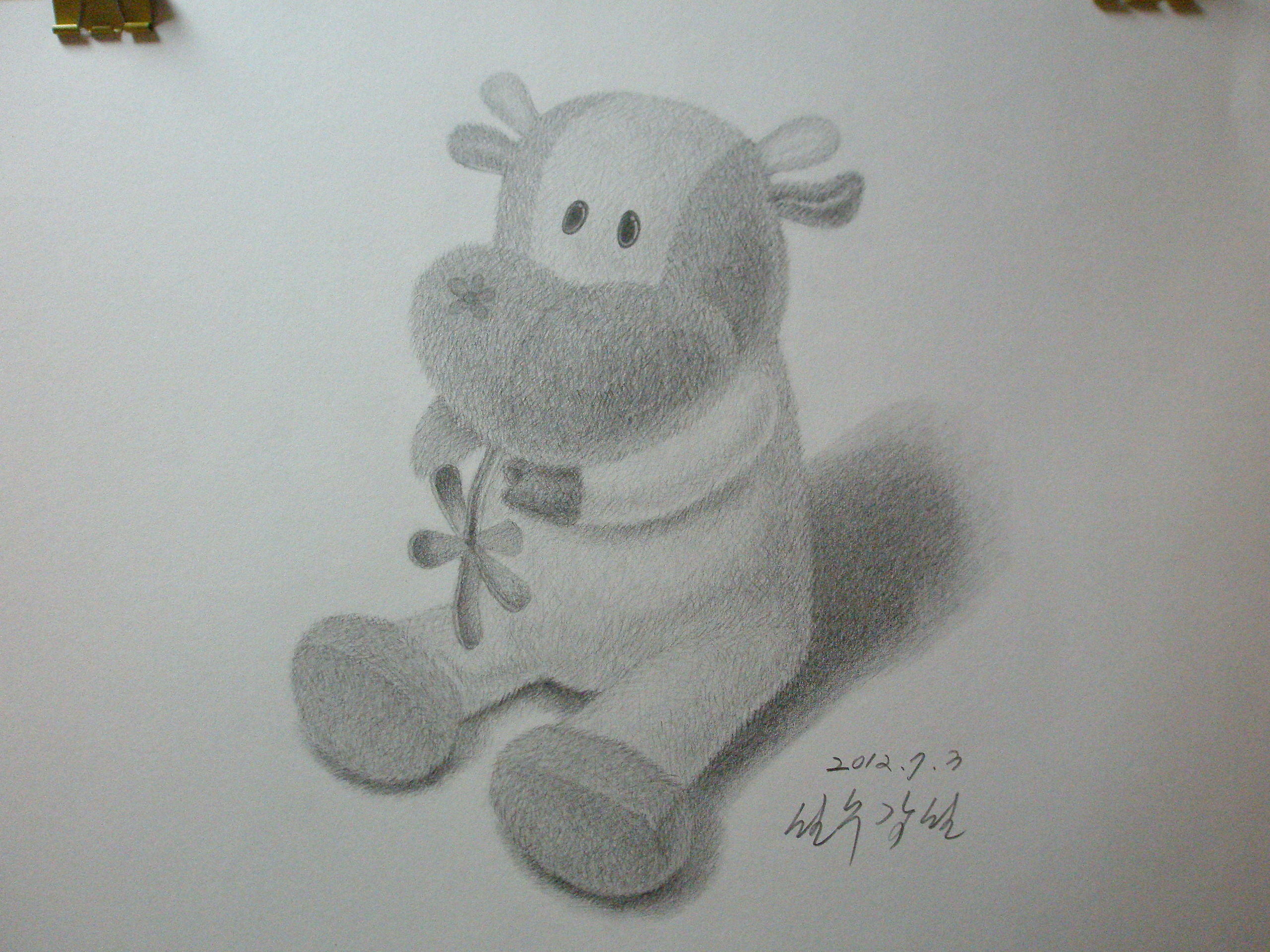 선생님 이쁜소 그려보았읍니다~~생각보다 어렵고 털 부분 묘사도 어렵내요...잘못된점 지적해주세요. 감사합니다^^