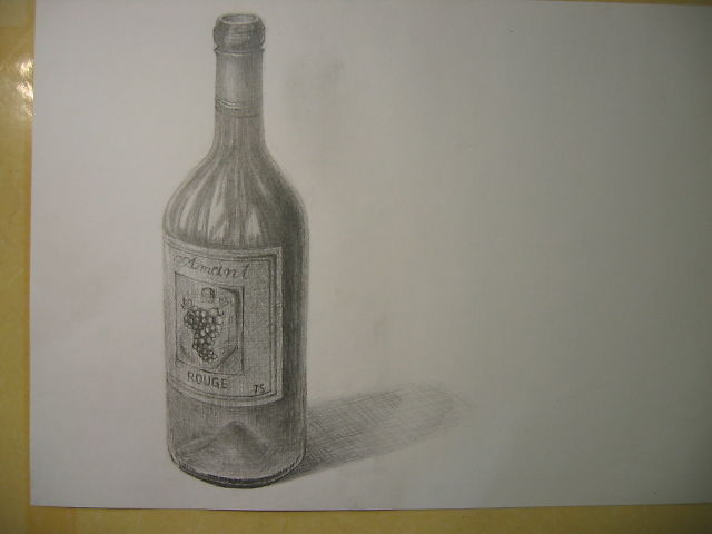 선생님 수정한것 올림니다 전체적 기본 형태가 잡혔는지요 .상표도 점점점...병밑에도 지우개질 수정했읍니다.조언부탁드림니다^^