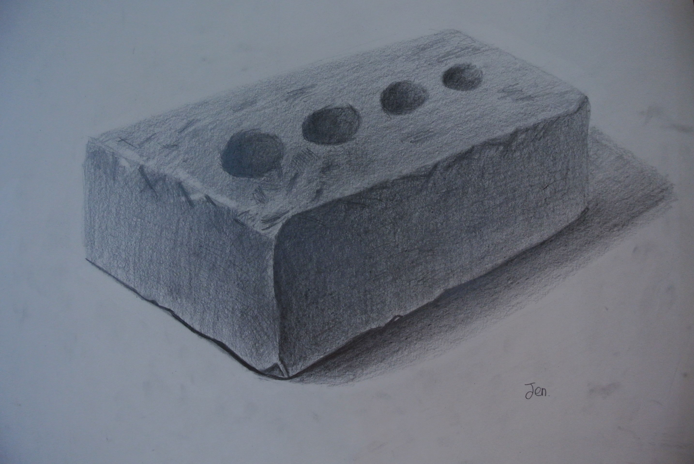 수정 후 벽돌그림 다시 올립니다. 거친표면을 표현한다고 했는데.. 여전히 부드러워 보이나요? 구멍도 고쳐봤는데... 어떤가요? 조언부탁드릴께요.