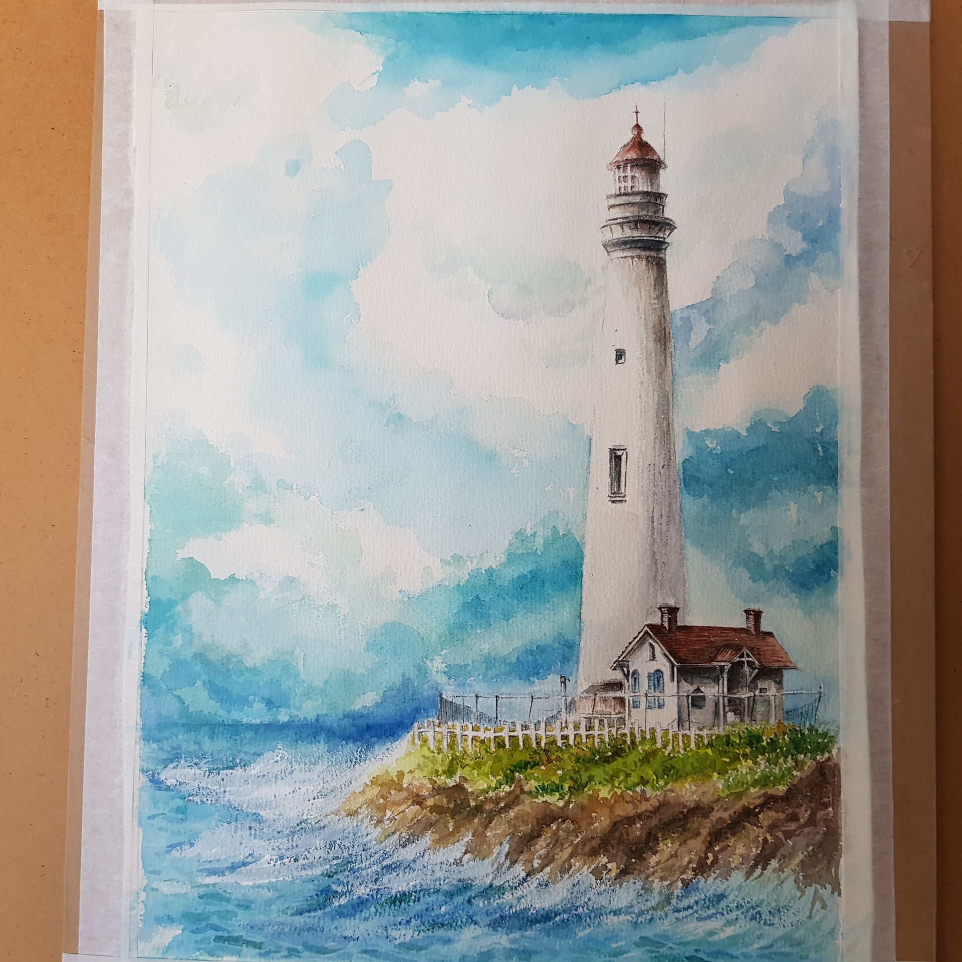 선생님 안녕하세요.중급 첫그림 연습했는데,구름이랑 바다 표현도 ㅠㅠ마음대로 잘안되요.자꾸 손대니 엉망진창 될꺼같아요,첫번째연습한것이 더 나은것 같아 일단 올립니다.근데 사진이 어둡게 나왔네요평가 부탁드립니다.