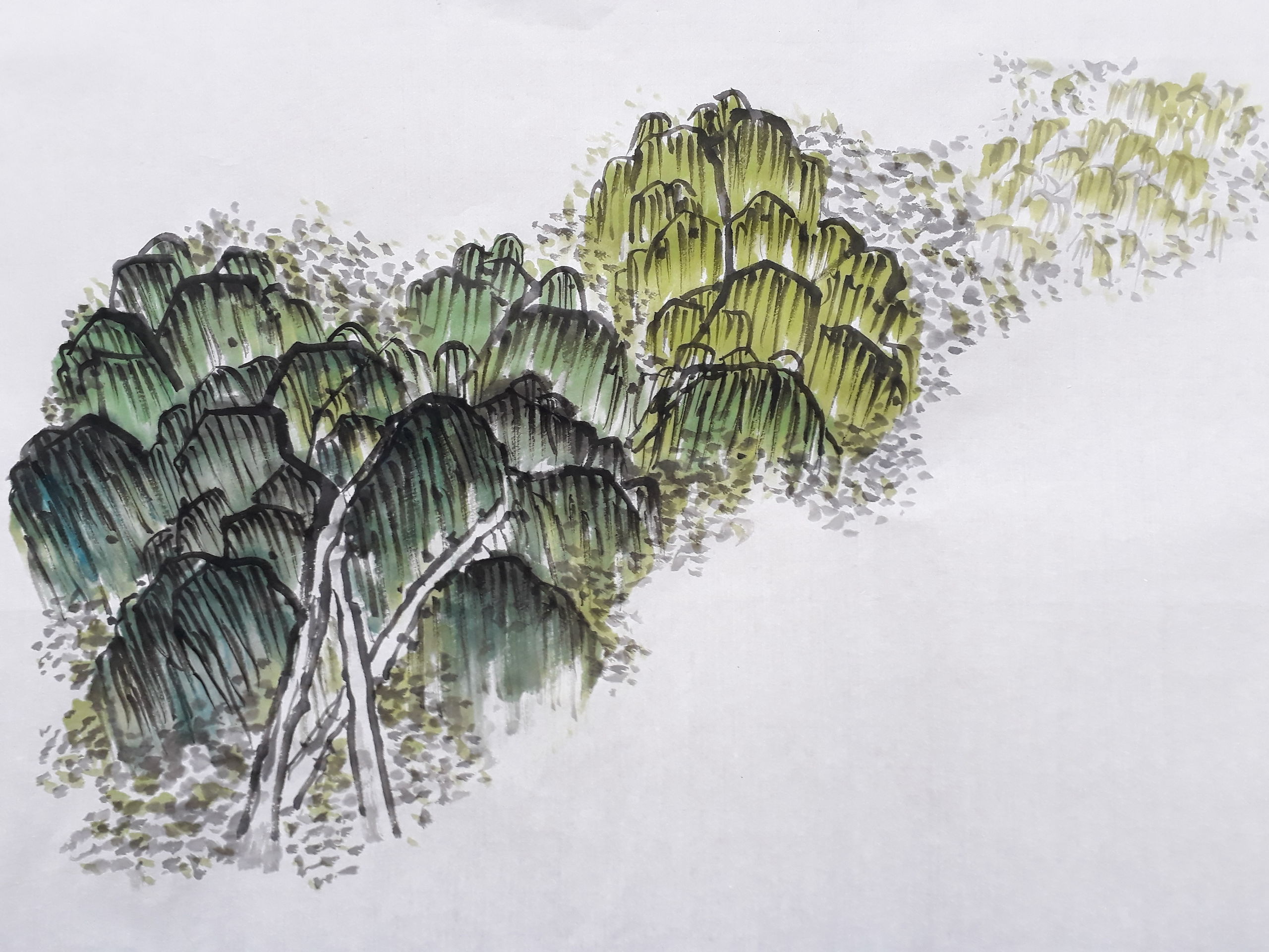 여러 버들이 모여 있는 산수화입니다. 지도 부탁드립니다.