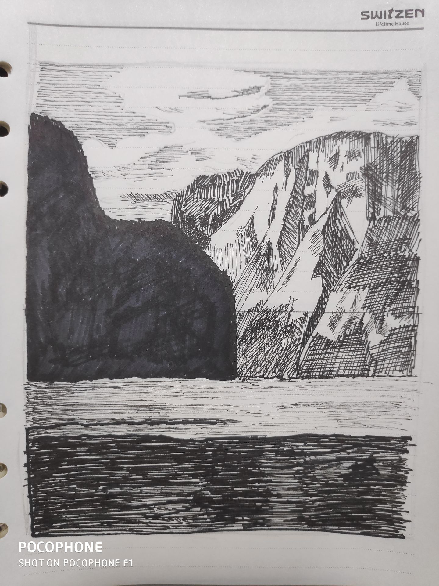 바위 느낌이 좋아 세로로 다시 그려 봤습니다.ㅎㅎㅎㅎ