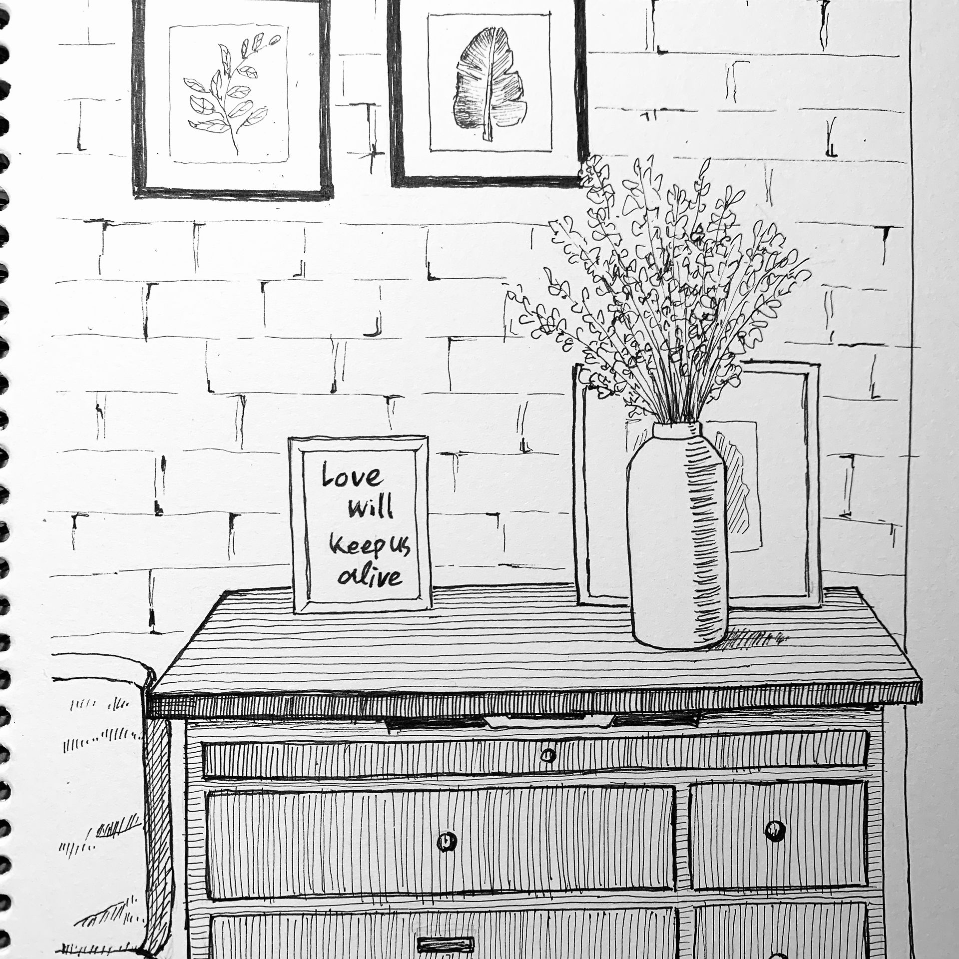 서랍장과 수수화병이 있는..