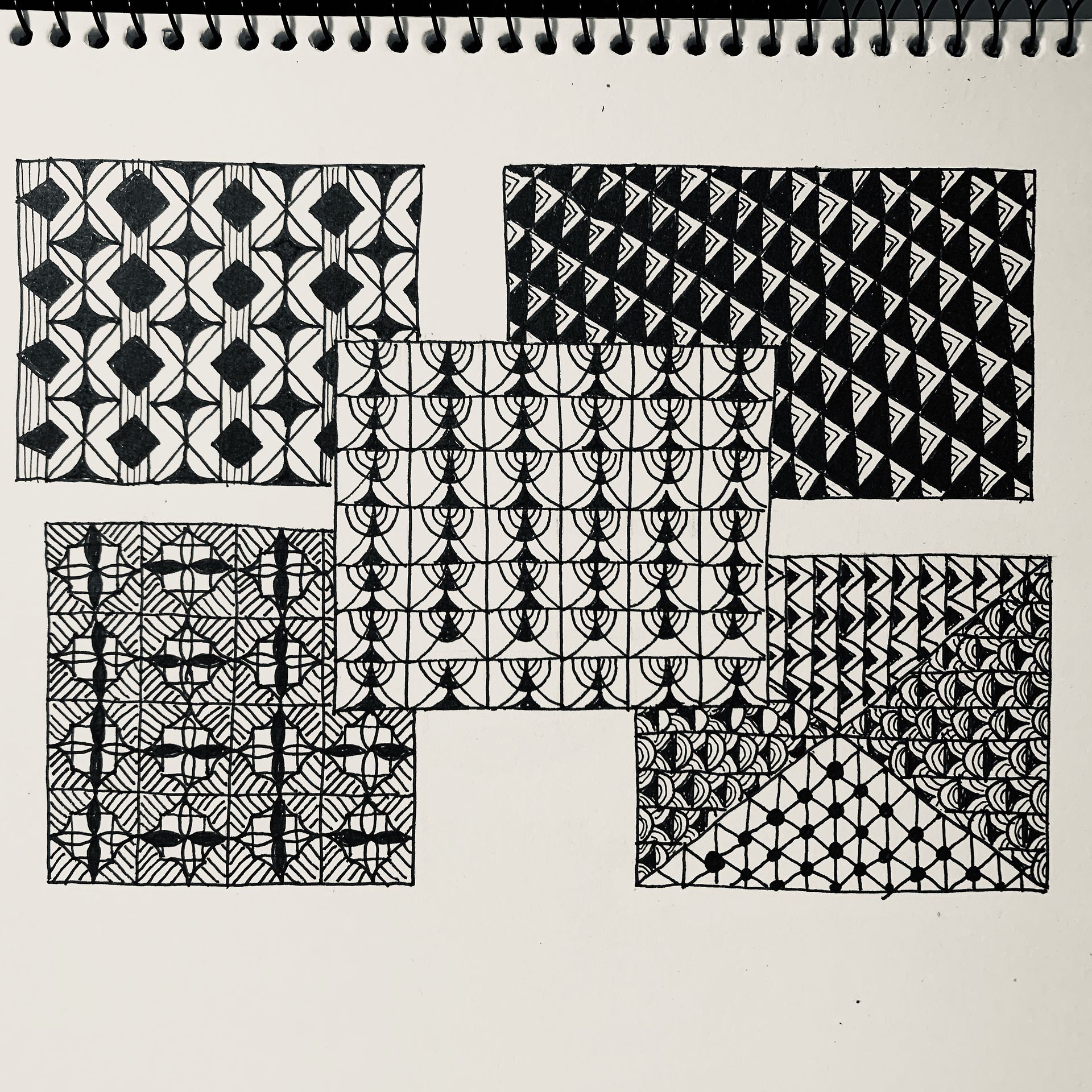 펜을 꽉 움켜쥐는 습관이 있어서(고치려고 노력중인데 정말 어렵네요^^;) 손도 아프고 눈도 침참한데 멈출 수가 없었습니다. 중독성이 있는 것 같아요. 다양한 패턴이 나오는 게 재밌고 신기합니다. 눈이 침침해져서인지, 밤이 늦어서인지 모르겠지만 매직아이처럼 입체적으로 보이기까지 하네요...^^