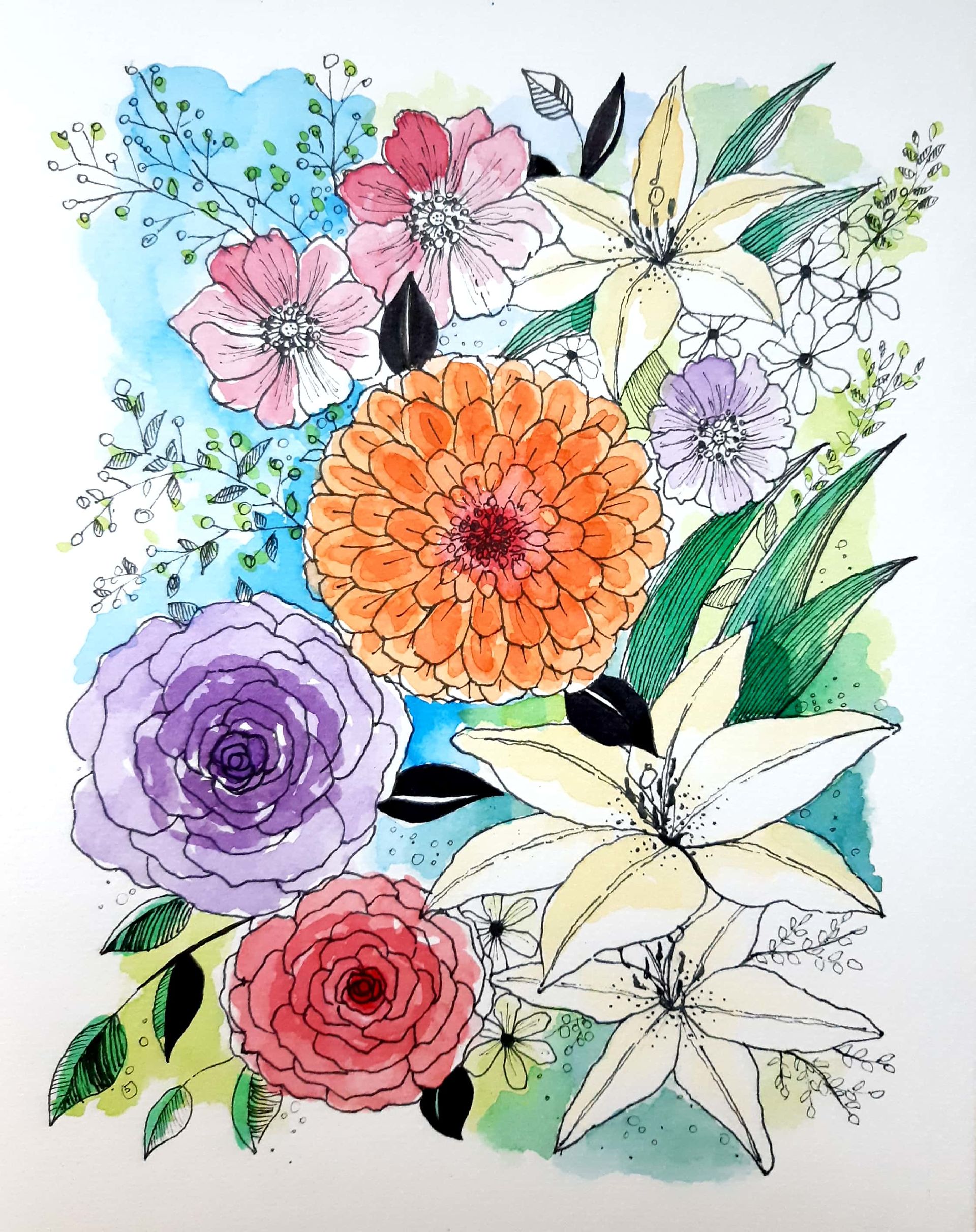 수채물감 채색이 재밌으면서도 어렵습니다~~