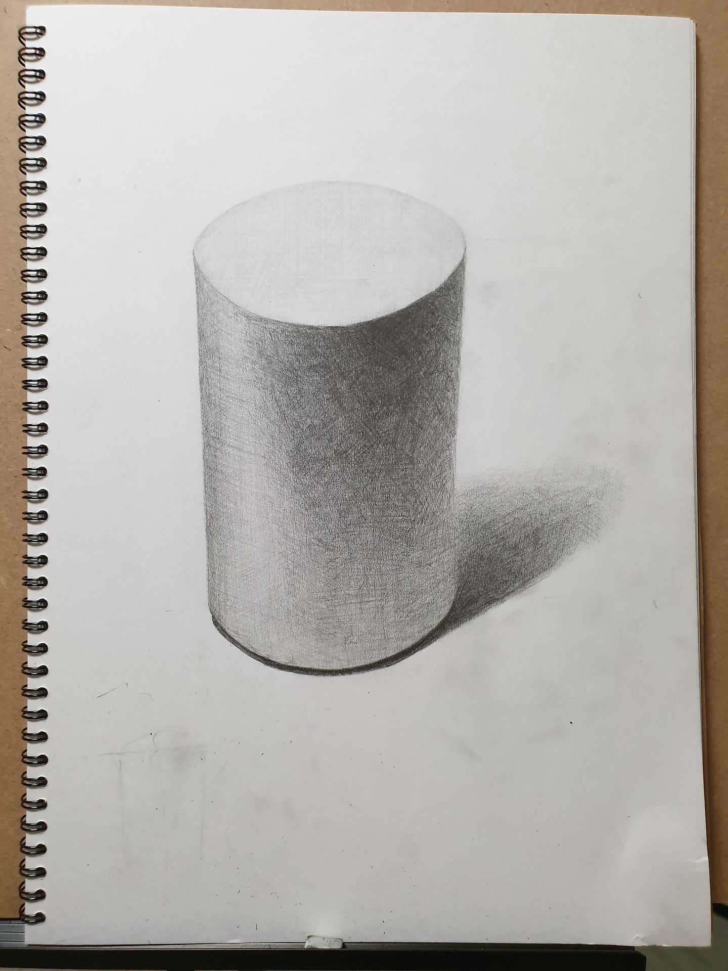 선생님이 고쳐주신대로 원기둥에 다시 명암을 쌓아봤습니다.명암 부족이 반복되는 지적사항인데요...제가 그리는 대상은 흰색 물체인데, 명암을 더 넣으면 대상을 회색이나 검은색으로 그리게 된 것 같아 명암을 더 넣는 것을 포기하게 됩니다.초보과정에 있으니, 이런 것은 무시하고 명암 표현에 집중하는 것이 좋을까요?