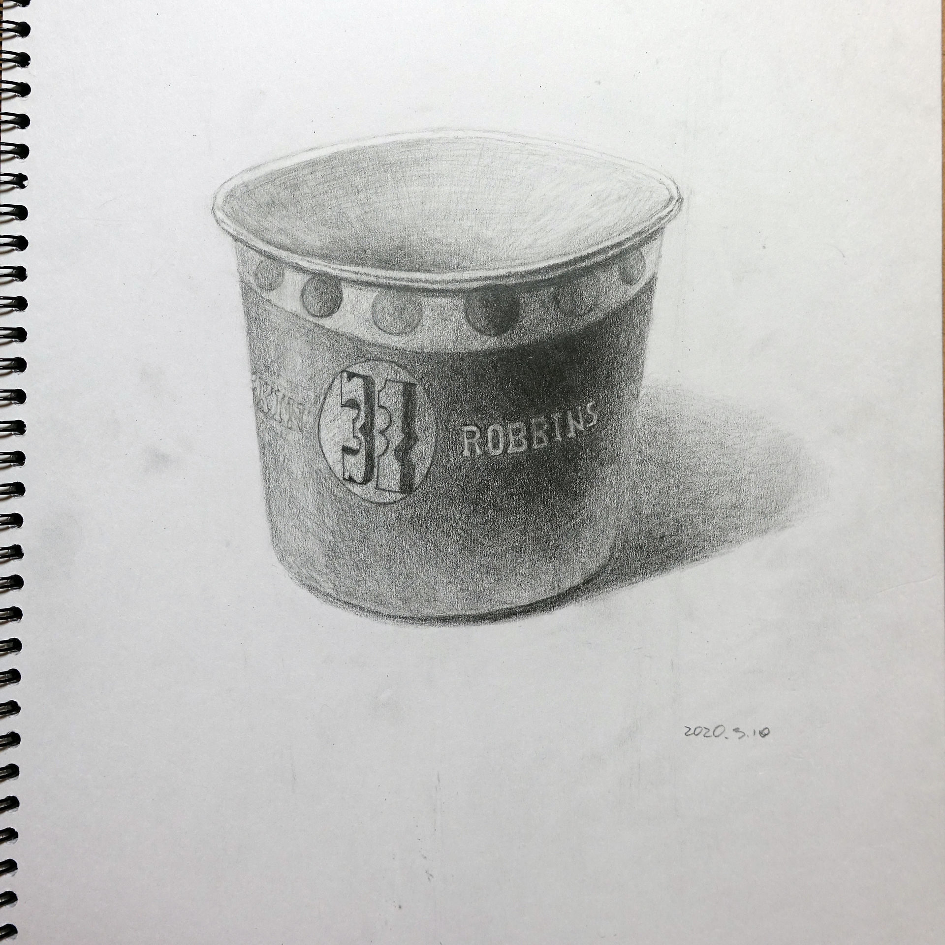 십자선을 긋고 형태를 잡았음에도 완성된 그림은 좌우 대칭이 안돼 몇 번을 지우고 그리기를 반복했습니다.형태 다음으로 어려웠던 부분은 통 안쪽을 표현하는 것이었습니다.선생님 하시는걸 보고 했는데도, 손이 따라주질 못하네요. 통 위에 접시 얹어놓은 것 같다네요. ㅠㅠ마지막으로 글씨는 라운드로 가이드선 그려가며 공을 들였는데, 결과물을 보니생각만큼 표현이 안됐고, 그냥 기울어지게 표현된 것 같아 많이 아쉽습니다.