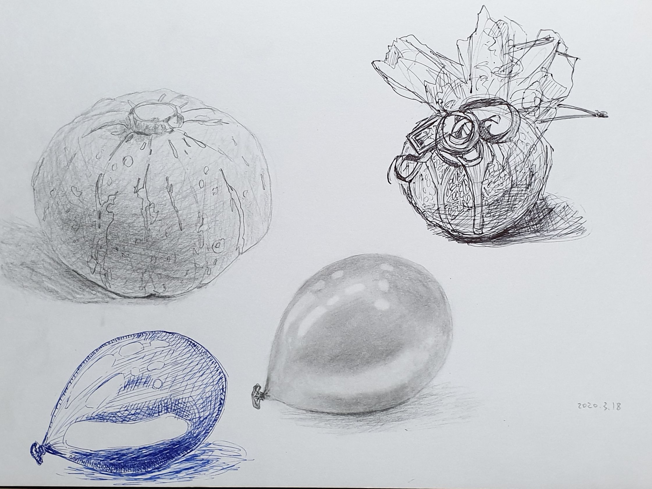 라벤더는 디테일이 많아서 퀵스케치를 퀵 하게 할 수 없었습니다. 그림만 보면 뭘 그린건지 형체를 알아볼 수 없게 됐구요,의외로 풍선 형태 잡는게 힘들더라구요.마지막 그림은 파란색 만년필로 풍선을 그렸습니다.원래 계획은 요즘 유행하는 어반드로잉 스타일로 세련되고일정하게 해칭을 하는거였는데.... 결과는 처참했습니다.고쳐보려고 명암을 넣어봤지만 더 흉칙하게 됐습니다. ^^볼펜으로 그릴걸 그랬나봐요.감사합니다. 좋은 하루 되세요~