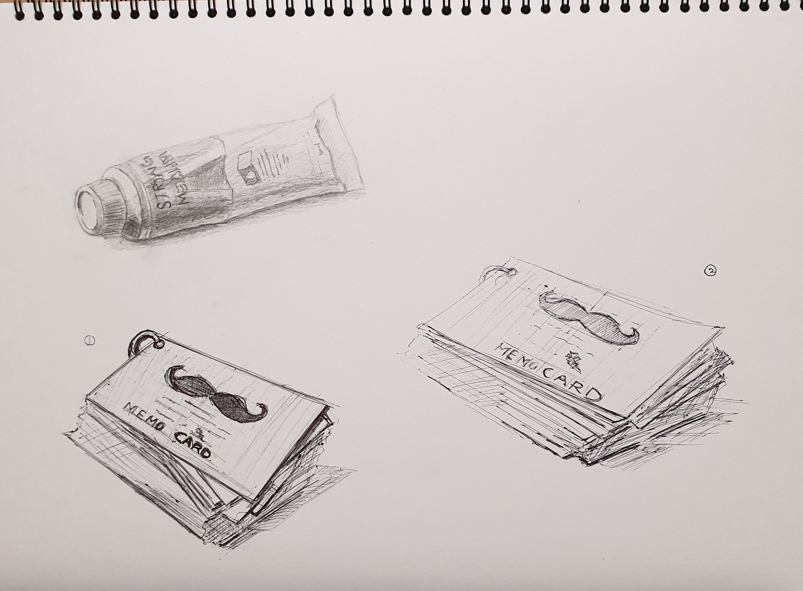 물감 형태가 원본 보다 많이 뚱뚱합니다.물감의 움푹 들어간 중간 부분을 상상해서 찌그러진 글씨를 썼습니다.메모장을 두 번 그렸는데, 두번째 스케치는 투시를 생각하며 외곽을 흐리게, 그리고 빠르게 그려봤습니다.다음 강의 부터는 보기만해도 어려워보이는 것들이네요.과연 강의를 따라갈 수 있을지... ^^감사드리며~ 좋은 하루 되세요!