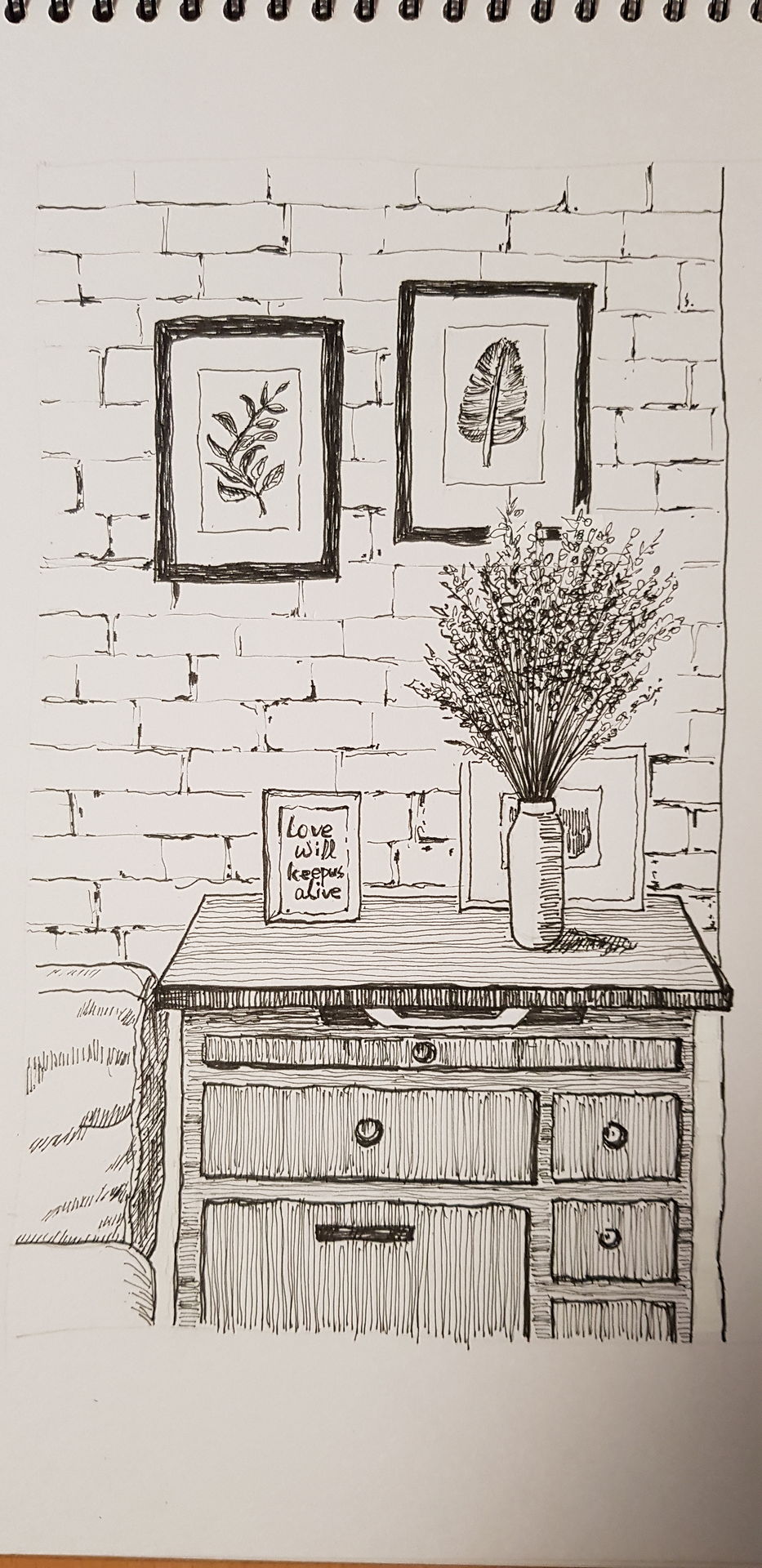 서랍장과 어우러진 소품들이 마음 설레게 하네요. ^^;수수 표현, 됫배경 벽돌을 어떻게 하나 걱정했는데요. 쉽게 설명해 주시네요. 표현은 잘 안되었지만 ᆢ그래도 그리는 동안 행복했습니다 ^♡^