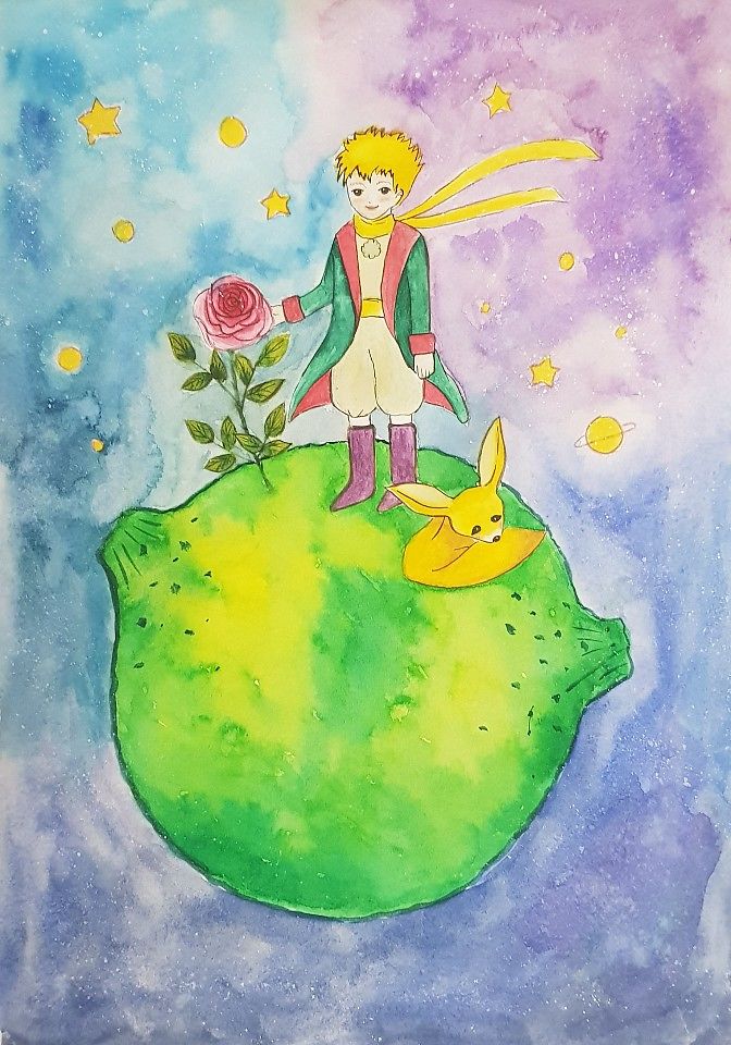 안녕하세요 박서영 선생님 ~ 12주차 어린 왕자 그려 보았어요^^ 물감이 얼룩덜룩 한건 수채화 전용 용지를 안 써서 일까요 선생님 ?