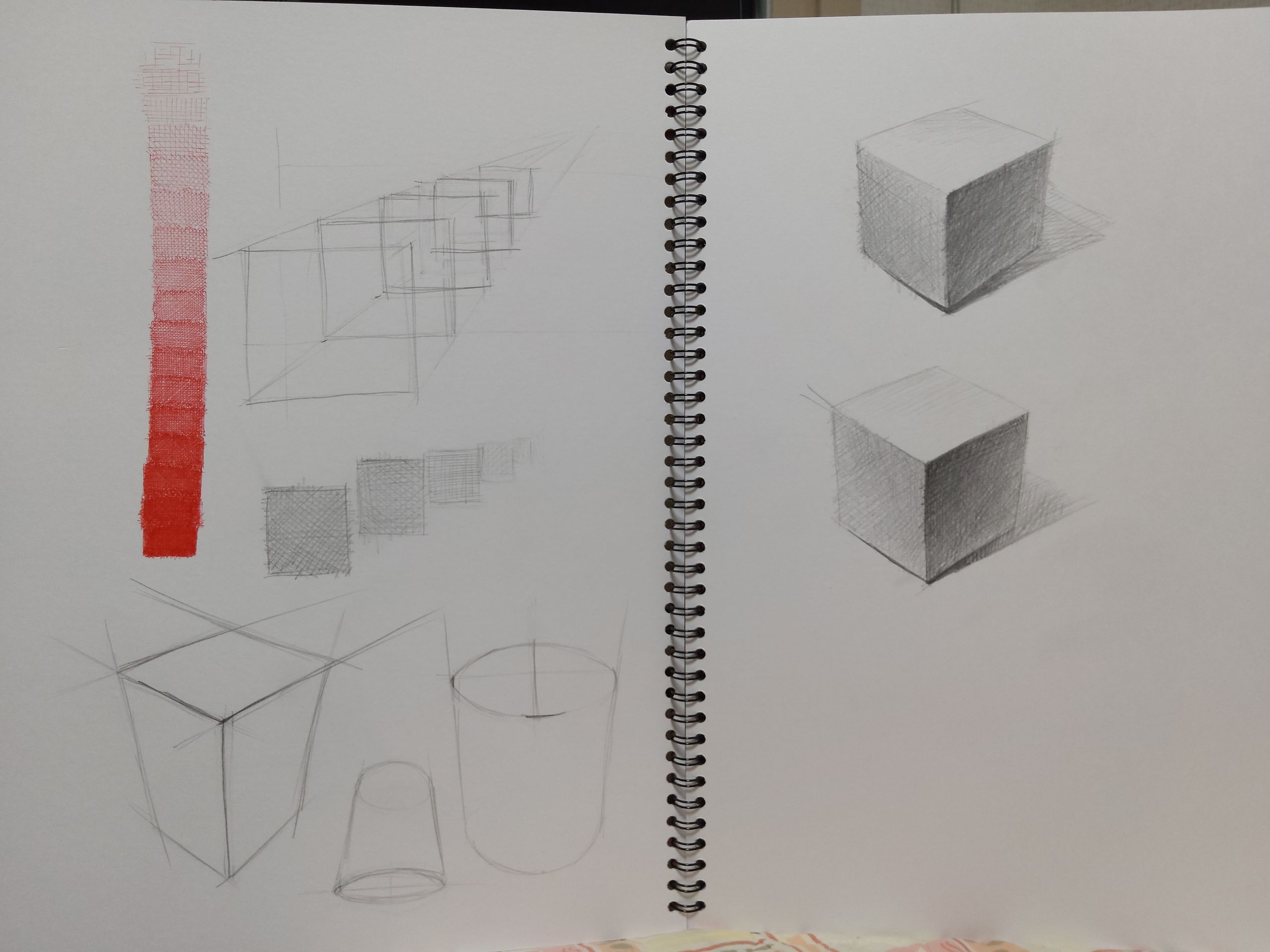3주차 펜 해칭도 올려봅니다.좋은 강의 감사합니다... 두가지 형태 정육면체를 어떤 때에 어느쪽을 그려야할지 생각해보았습니다.그림자와 반사광이 좀 이해가 어려웠는데 그게 그림에 나온것 같아요^^;
