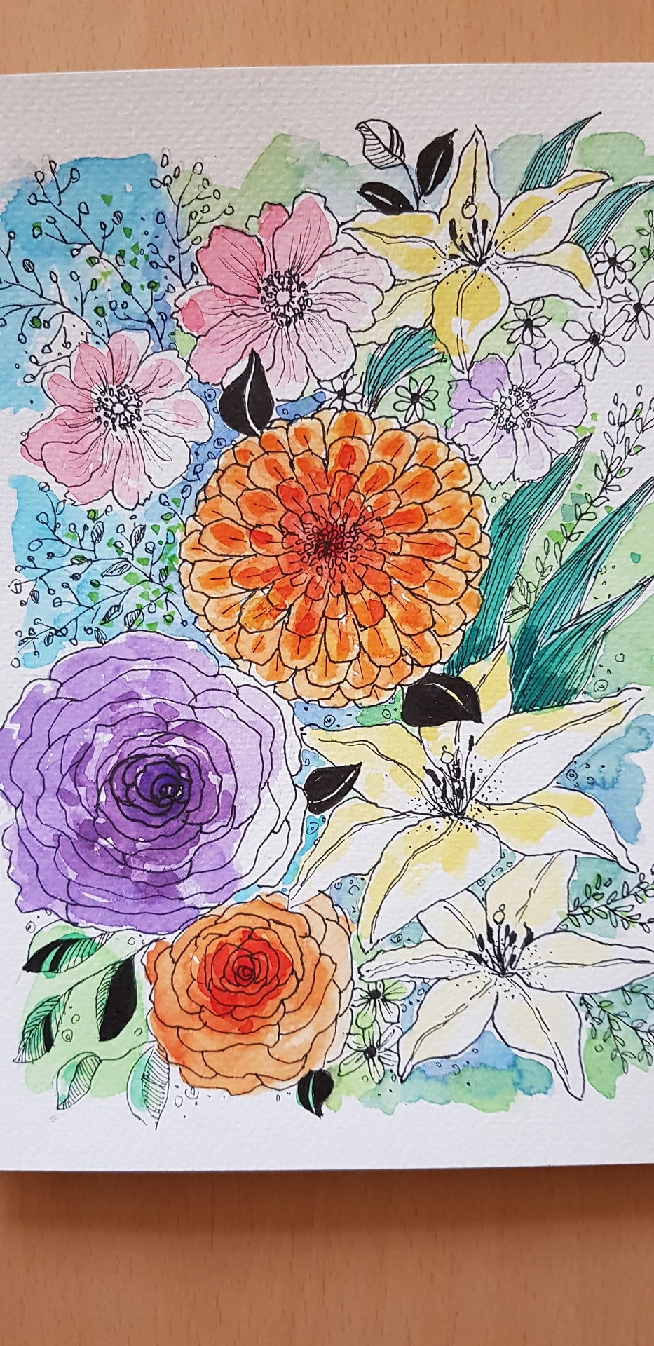다양한 꽃표현을 해보는 좋은 시간이었어요. 다소 힘에 부쳤지만 그래도 즐거웠습니다. 자세한 설명과 함께 수채화와는 또다른 색다른 경험이네요. 감사합니다 ^♡^