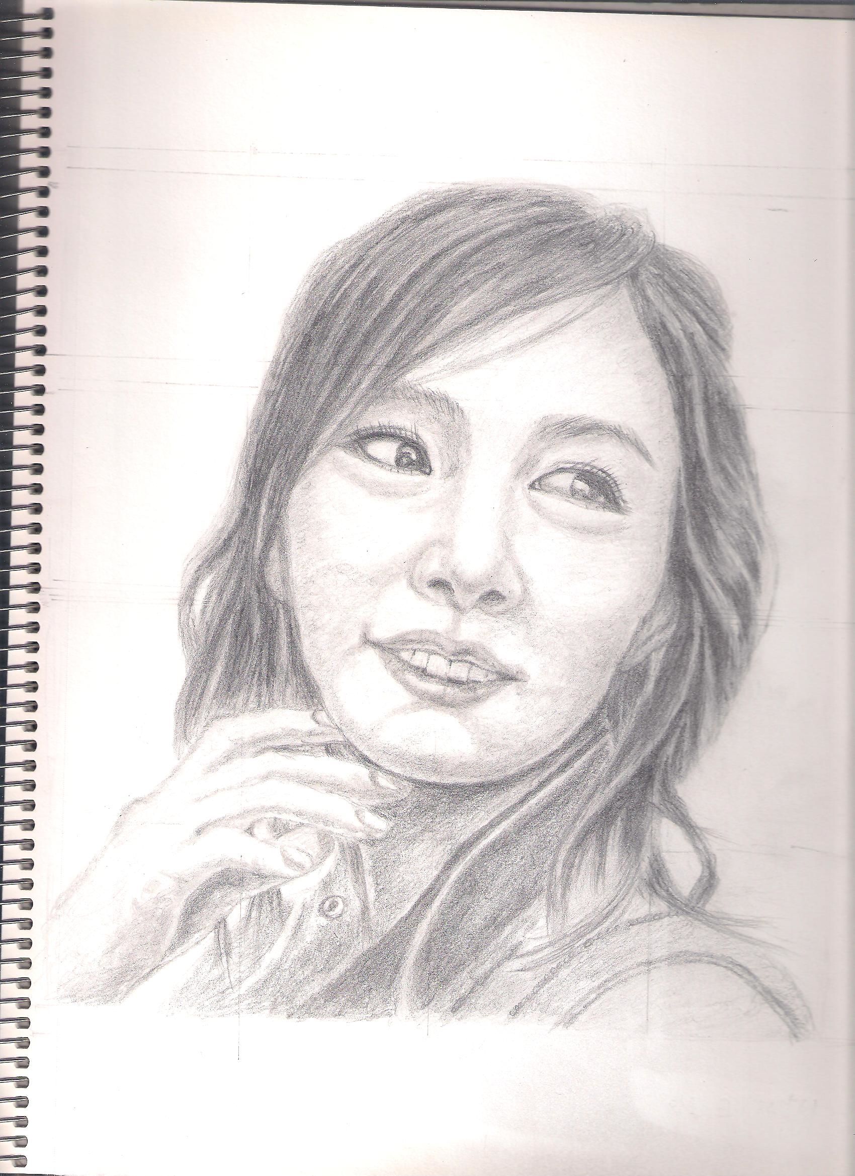 다시 그릴까 하다 수정했습니다 . 눈,코,입 위치 다시 잡고 고쳤어요.노력은 햇는데 아직도 선생님이 그린것과 같지 안네요 .