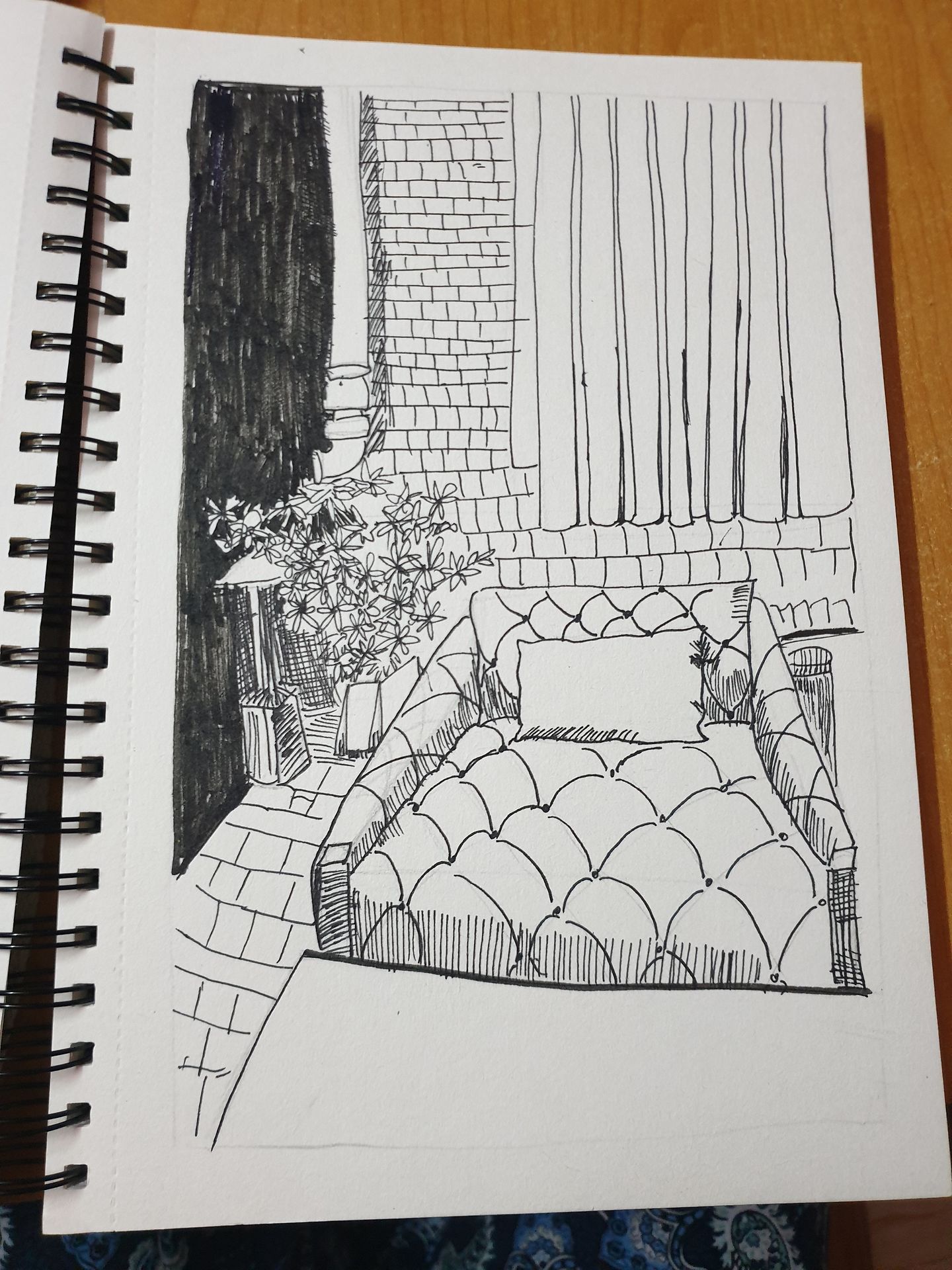 안녕하세요. 선생님. 오늘은 소파가 있는 거실 그렸어요. 구도를 잡는데 그리다 보면 선생님과 좀 다를 때가 있네요. 밤늦게 그리는거라 조금 졸면서 해서 틀린부분들이 있어요. 양해해주세요 그리고 붓팬을 인도에서 산거여서 그런지 선생님것 처럼진한 색이 잘 안나오더라고요. 그냥마른 색깔이 나와요. 여러번 덧칠하긴했는데요. 다음에 한국가면 제대로된 걸 사도록 하겠습니다. ^^