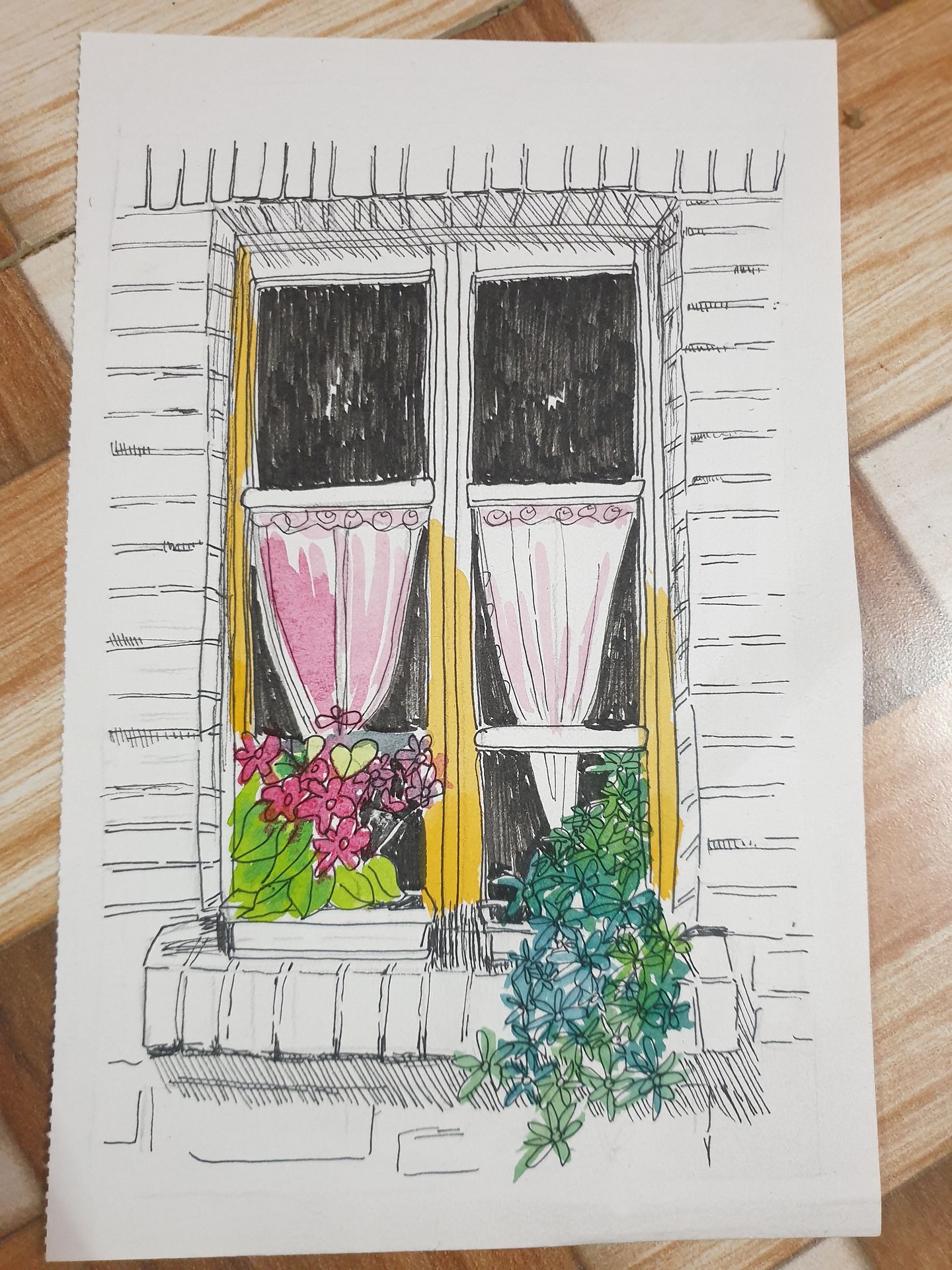 창문 그림을 그리고 수채화 물감으로 색칠하니까 너무 예쁘게 된것 같아요. 선생님 수업 너무 잘 듣고 있어요. 특히 구도 잡는 것 잘 배우고 있네요. 감사합니다