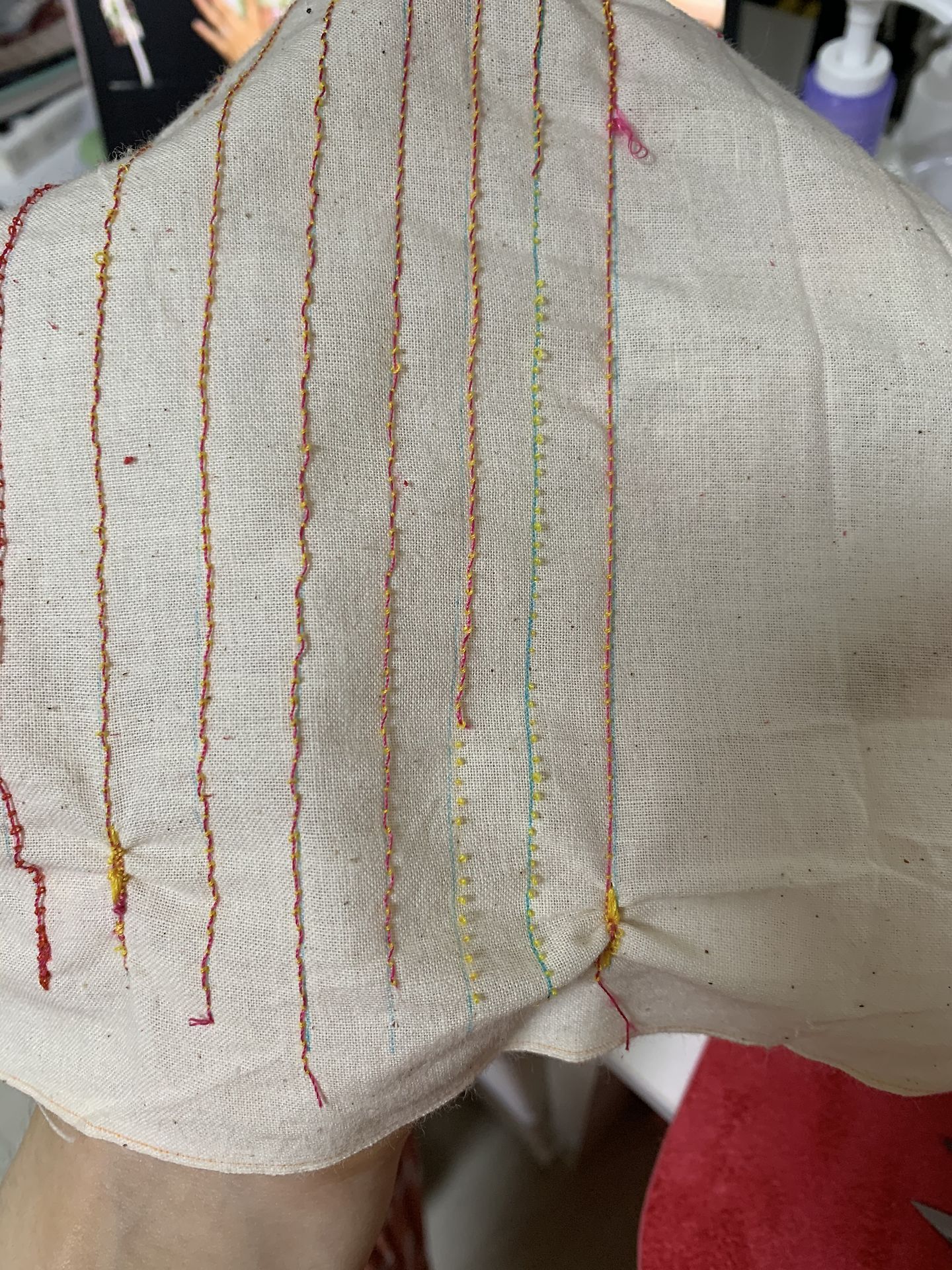되돌아박기를 하면 더심하고 사진처럼 원단이 찌그러져요ㅠㅠ