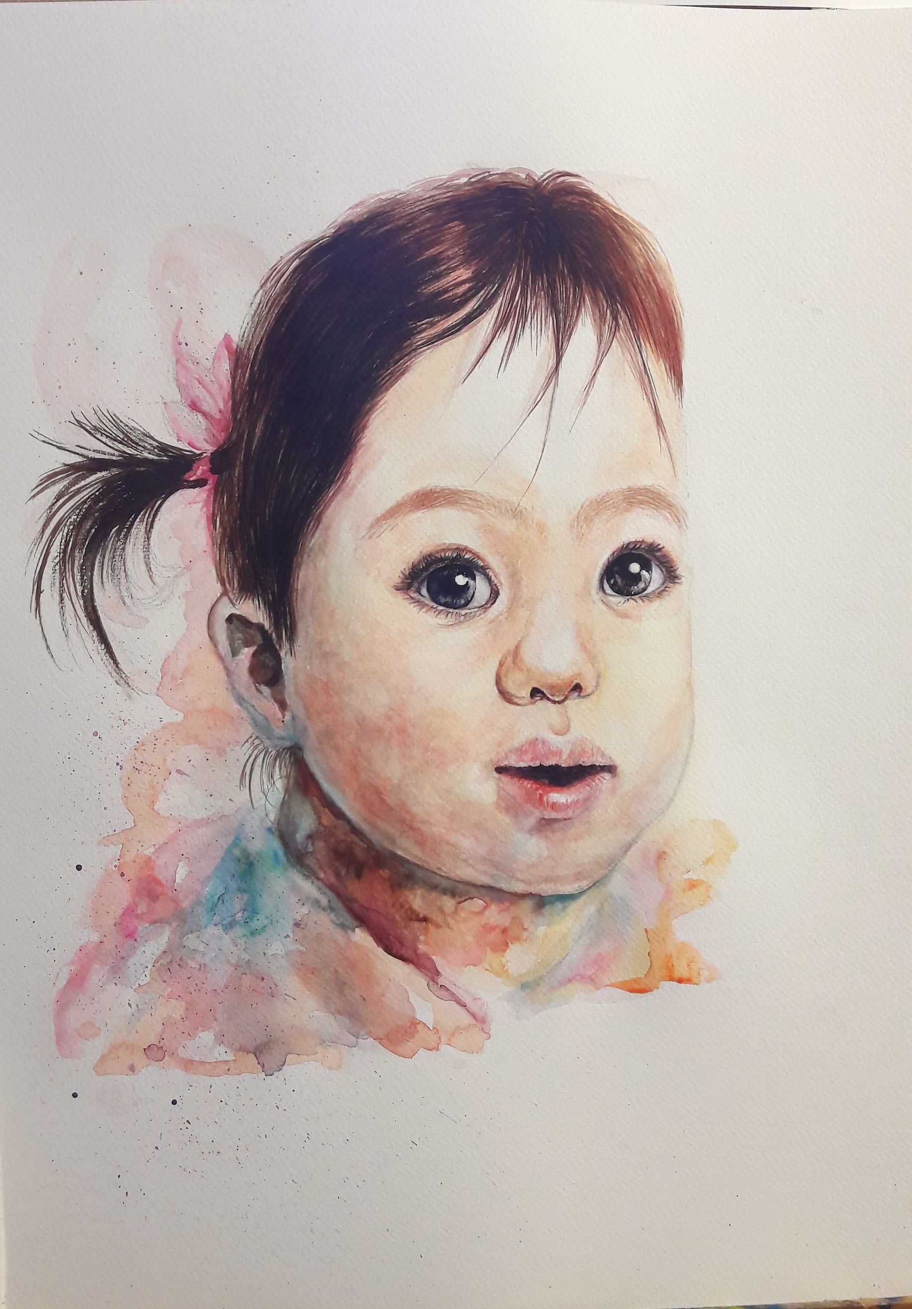 선생님 인물 아기 완성해서 올립니다.몽환적인 분위기 표현하는 색감과 번지기 뿌리기 참 예쁘네요! 그림 가만히 쳐다보고 있게 됩니다.연습해서 멋지게 잘 되는 날을 기대하며,그림 봐주셔서 감사합니다.🌹