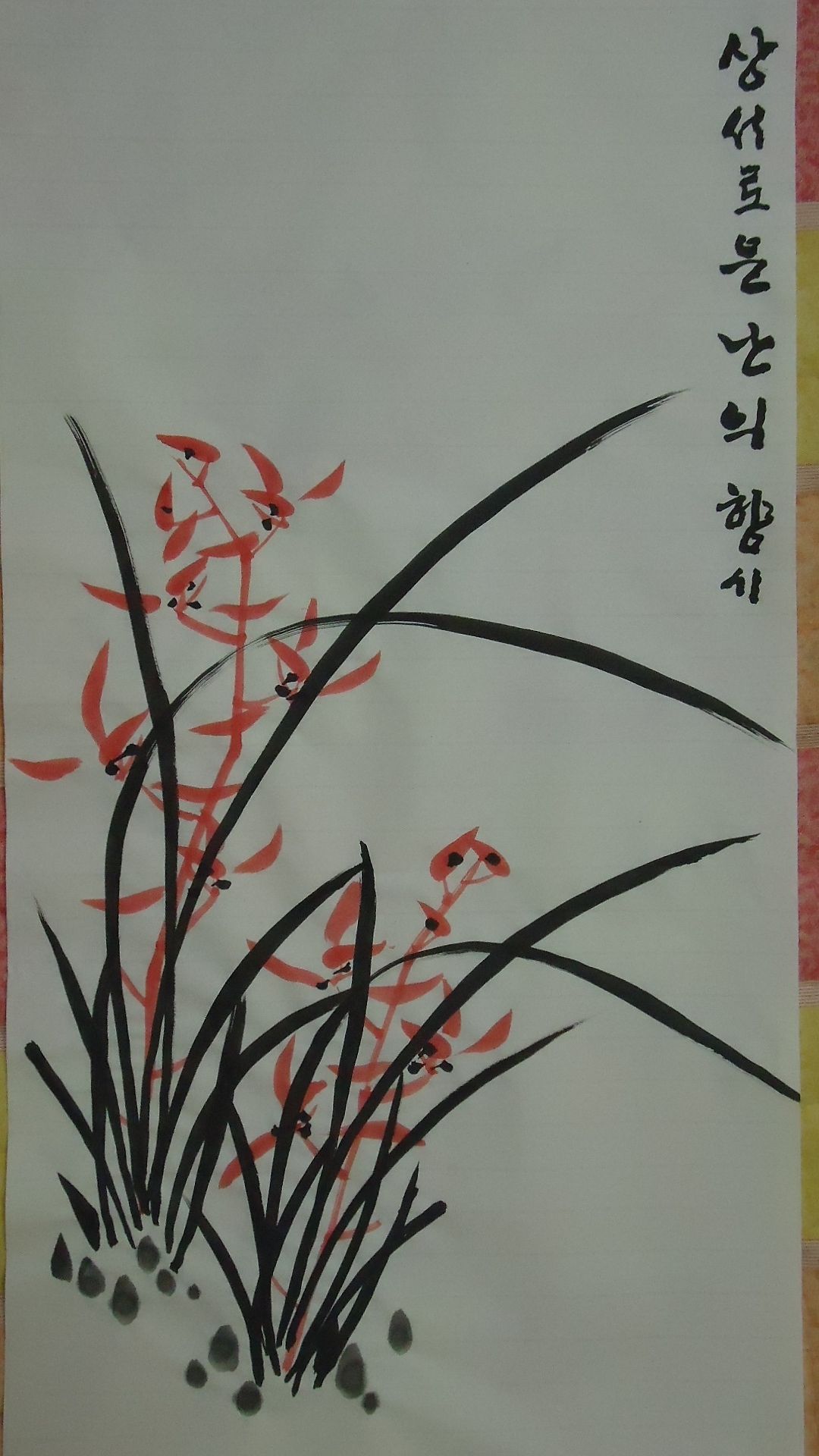 꽃을 양홍을 써봤습니다. 마지막 '기'자기 좀 작게 나와서 아쉽지만.. 일단 평가 부탁드립니다.