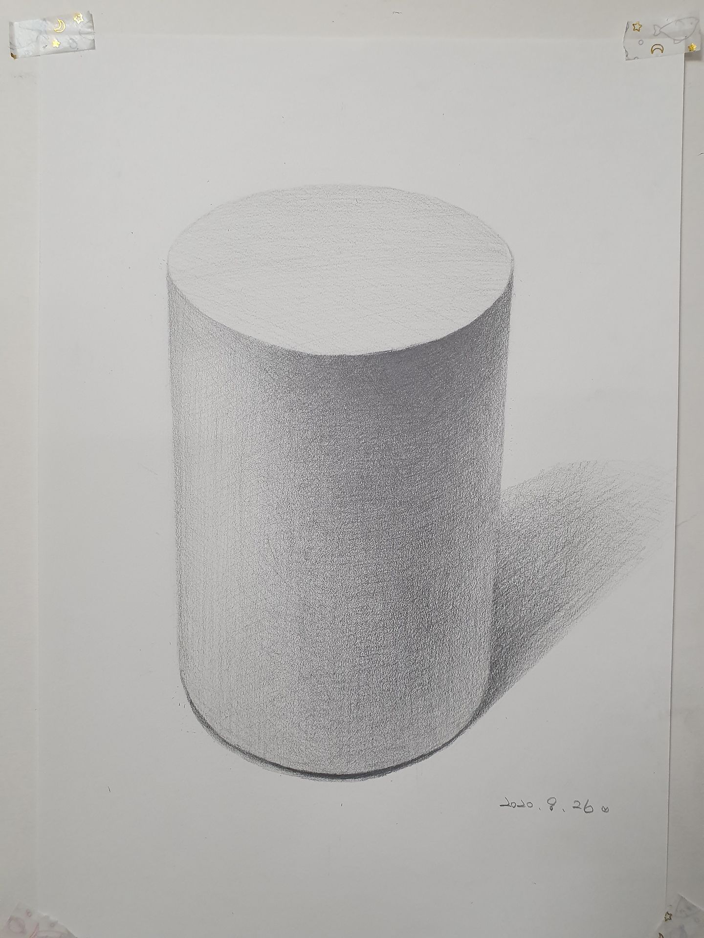 원기둥을 그려봤습니다~정육면체보다 쉬울거라 하셧는데 ㅠㅠ 저눈 훨 어렵게 느껴진 원기둥이었네요 한면에 명암을 자연스럽게 밝은면과 어두워지는 면이 이어지도록 하는 부분이 어려웠고 ,역시나 그림자 부분을 어떻게 표현해야할지 망설이며 그렸어요 ( 그림자와 원기둥 오른편이 만나는부분) 몇번 더 그려봐야겠어요 ~선생님처럼 슥슥 그리는날이 오기를 ^,^ 좋은강의 감사합니다 !