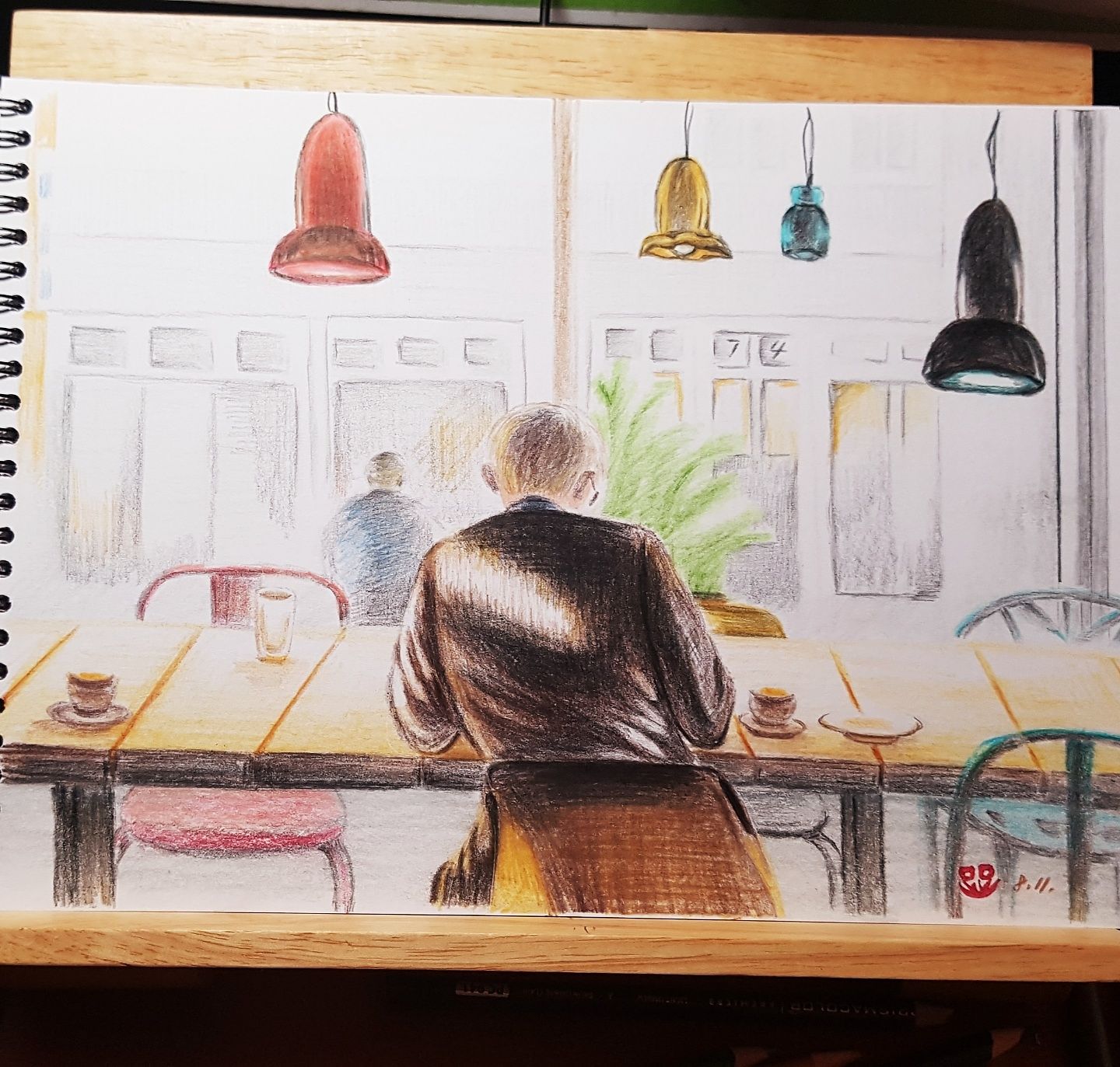 선생님 한가로운 오후의 까페 올립니다~까페의 여유있는 분위기를 잘 표현 해야하는데 하나하나에 너무 집착해서 늘 전체를 보는 여유가 없네요^^;;;;신사의 자연스런 옷 주름 표현이 어렵네요.....