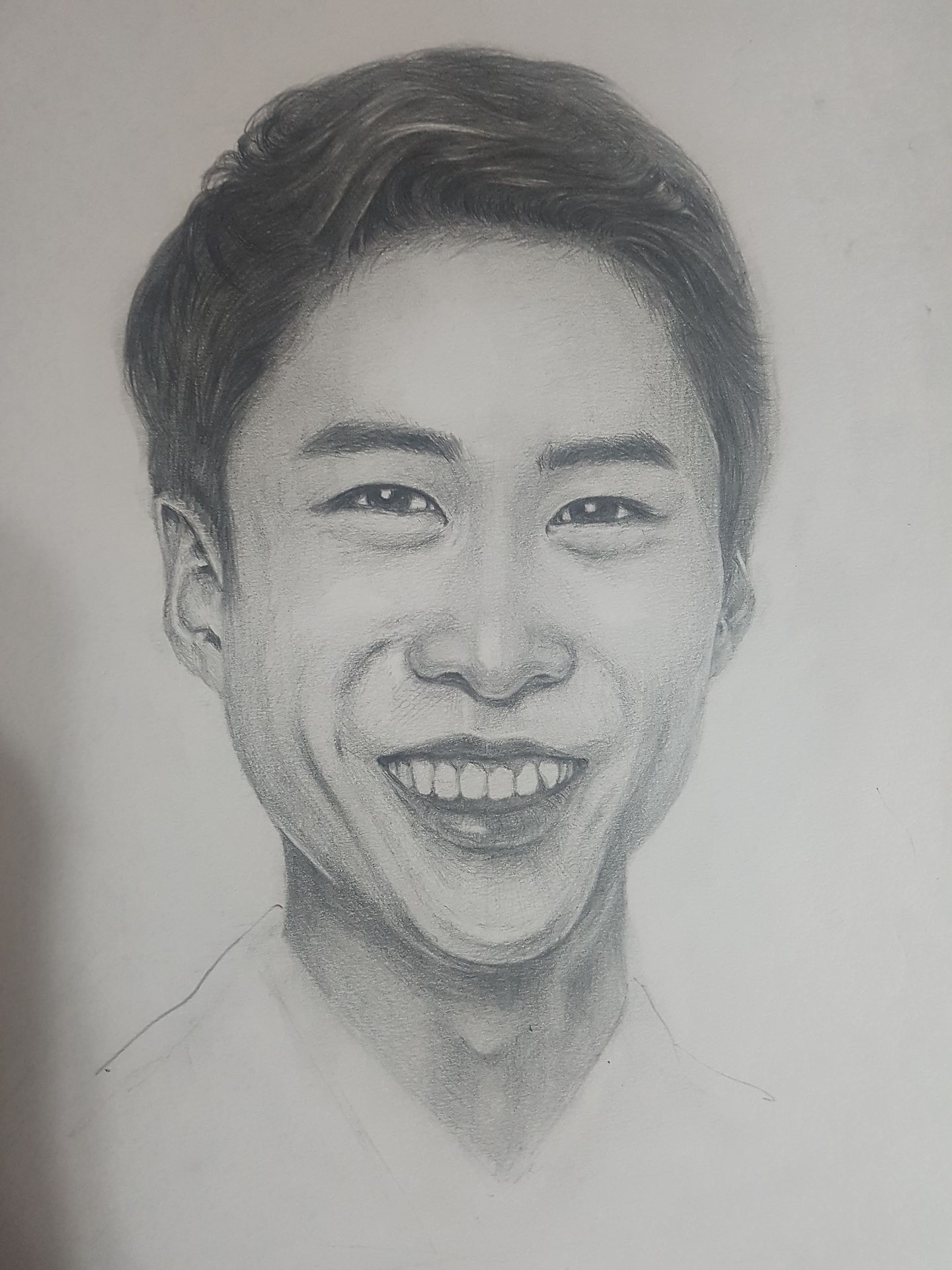선생님 따라서 구도 잡고 혼자 명암을 넣어봤습니다제대로 구도를 잡았다고 생각했는데 막상명암을 넣다보니 입 모양이 다른것 같고 얼굴 형태가 사진보다 길쭉해졌네요다시 그리려다 머리카락 그리면서 넘 진을 빼서 그냥 올려봅니다머리카락이 뒤엉켜있는데다 사진에서 머리카락선이 분명하질 않아 좀 힘들었네요좋은 말씀 부탁드립니다^^