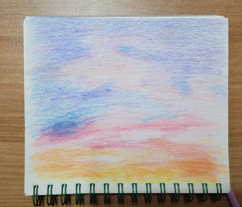 저녁하늘 그리면서 엄마랑 엄청 웃었어요.