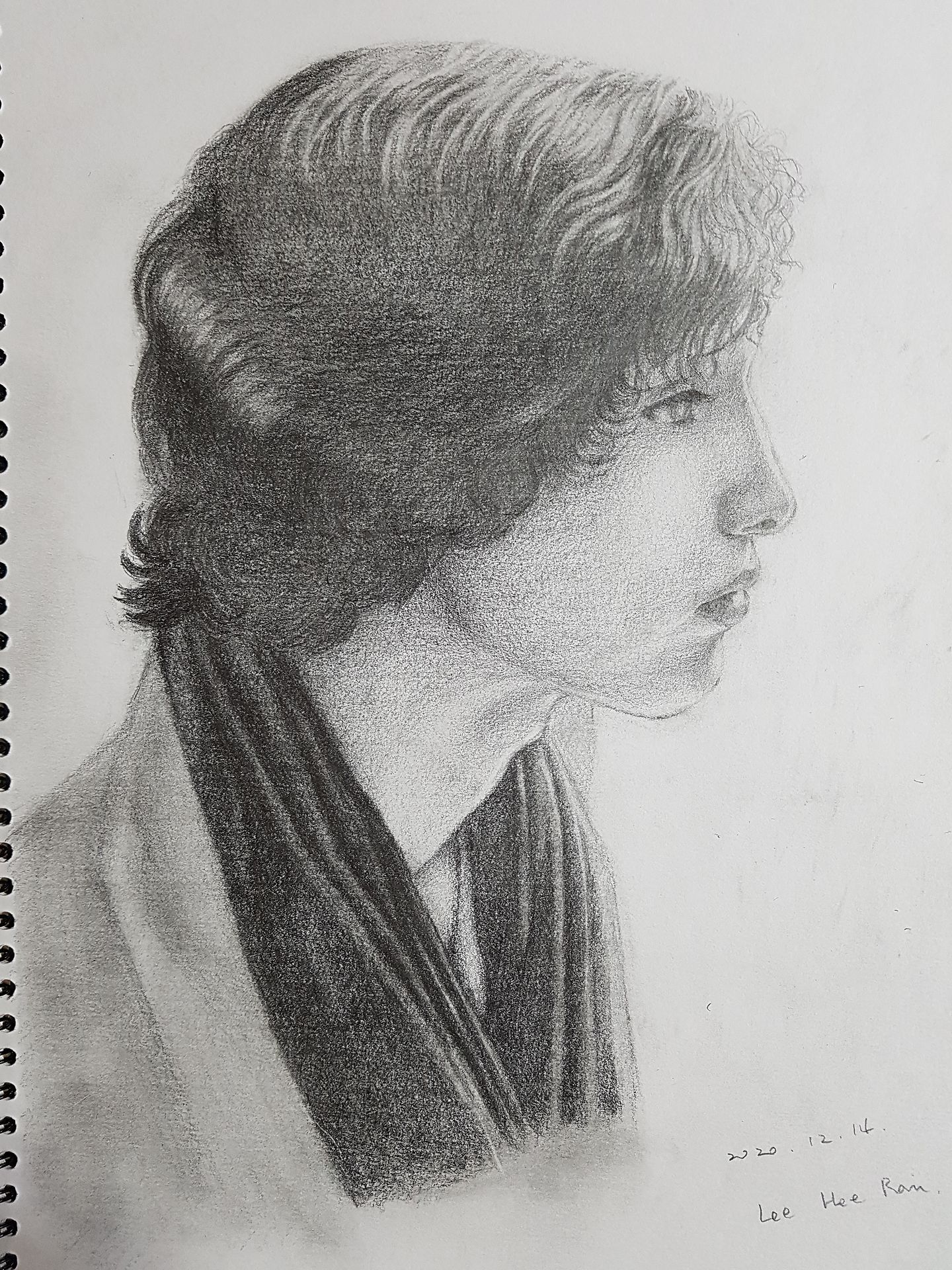 머리카락이 선명하지 않아 가운데 부분은 상세한 표현을 생략했습니다사진으로 찍으니 얼굴부분의 명암이 약해졌네요그릴땐 힘들어도 완성해놓고 보면 성췩감을 느끼는게 그림그리는 묘미라는 샘말씀 넘 공감합니다추운데 감기 조심하세요^^