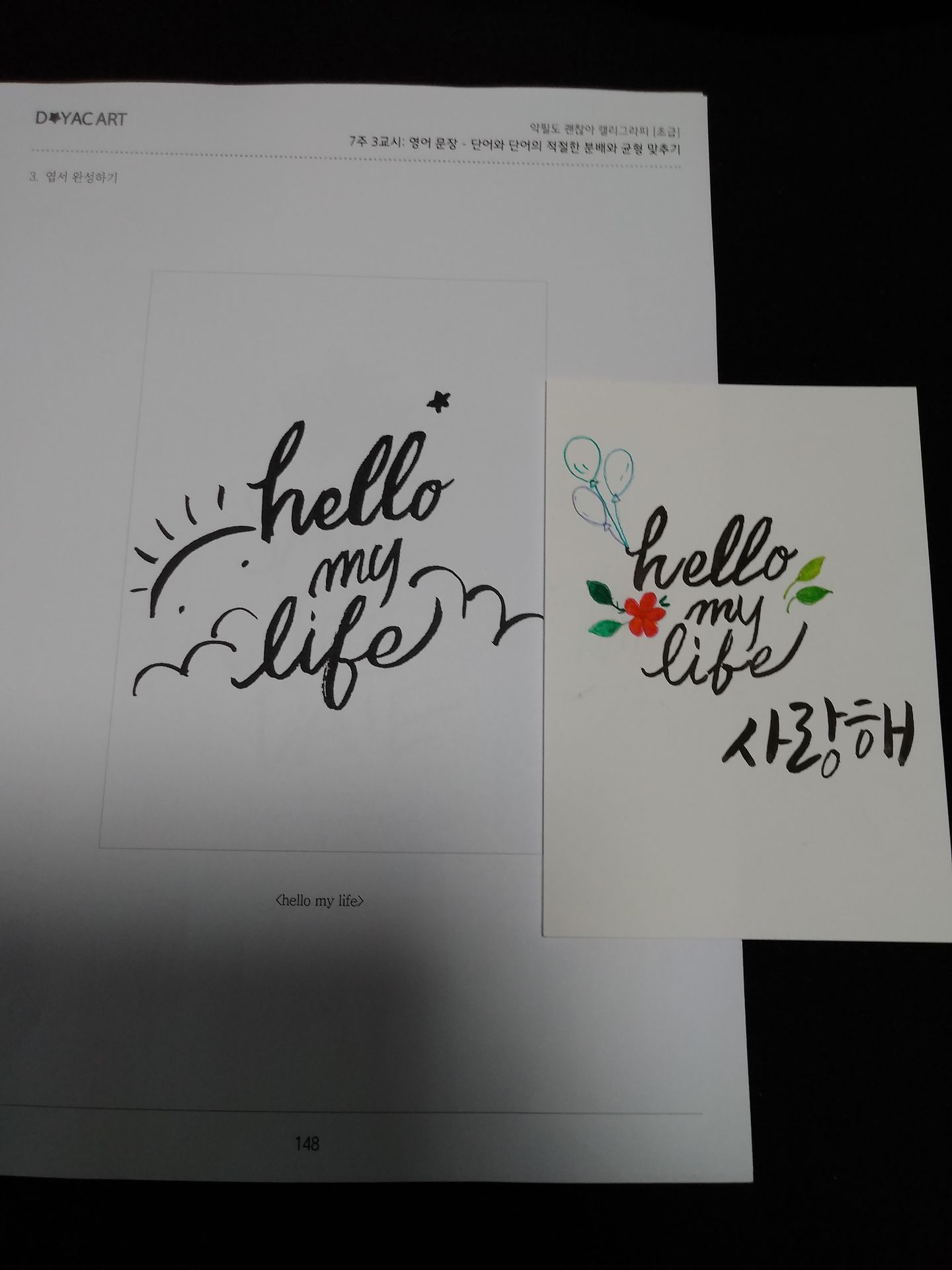 아래 공간이 남아 사랑해를 썼는데 '해'자를 너무 크게 쓴 거 아닌가 싶어요?