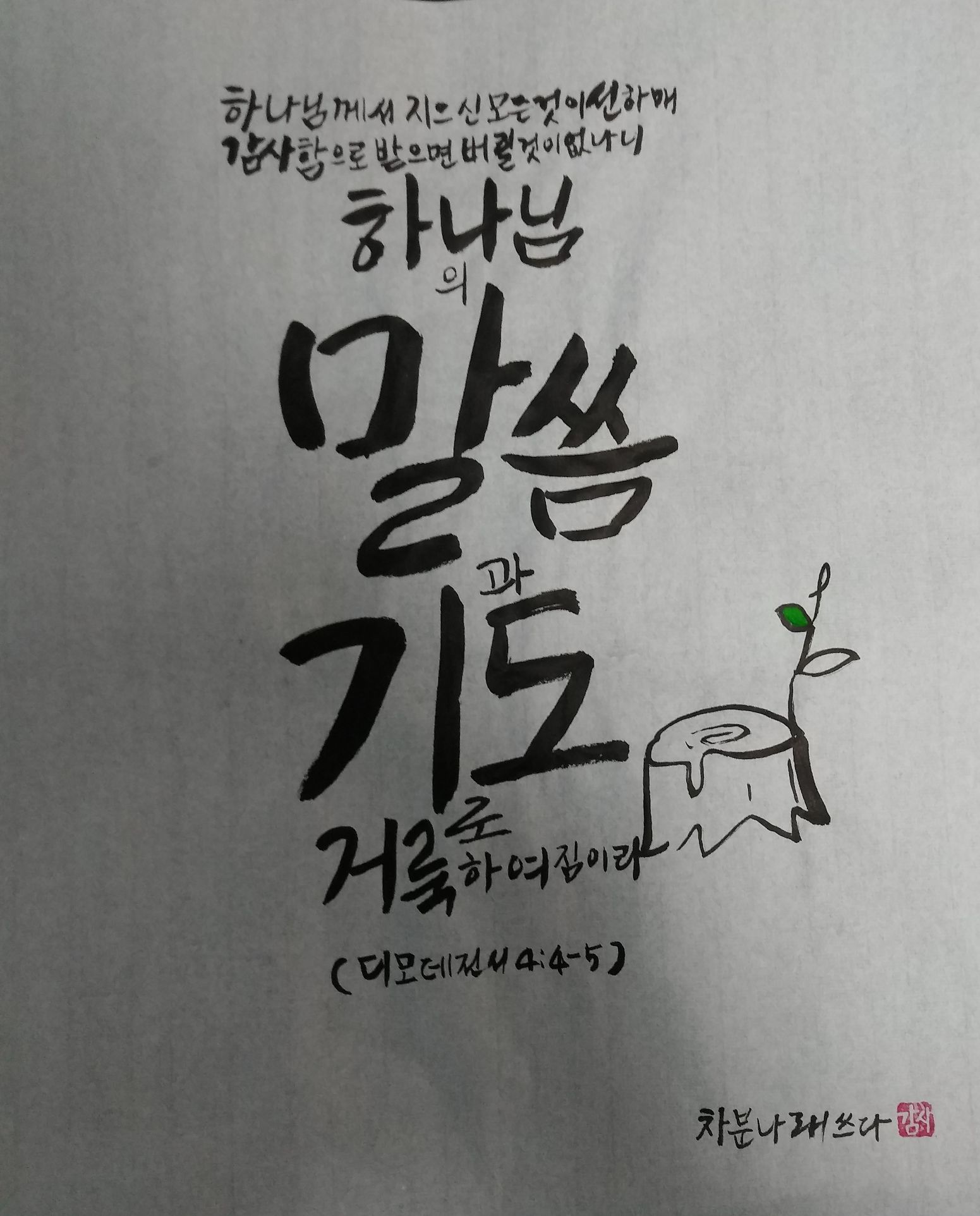 말씀이 너무 쓰고싶어 실력이 안되지만 써 봤어요. 제가 평소에 쓰는 펜글씨와 닮았네요ㅎㅎ 이렇게 써도 캘리그라피가 될까요?전체적인 조언 부탁 드려요^^* 한주도 평안 하세요~