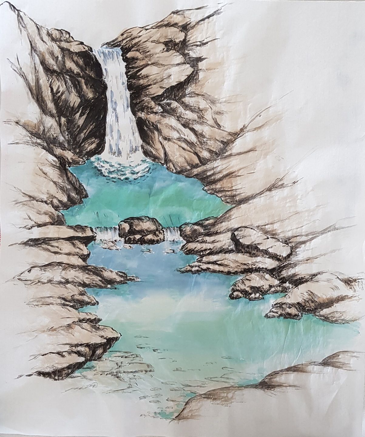 지난번 그림 지도를 세심하게 해주셔서마치 화실에 앉아 있는 느낌이었습니다.그림과는 전혀 관련없는 전공으로늘 먼 곳에 있다고 생각했던 그림이제 옆으로 다가오는 느낌입니다.너무 감사드리고 큰 도움 됐습니다.실력이 미천해서 따라가기 쉽지 않지만다시 한 걸음 걸어 봅니다.고급 16, 17강의 폭포와 계곡을 함께 그려봤습니다.지도 조언 부탁 드립니다.