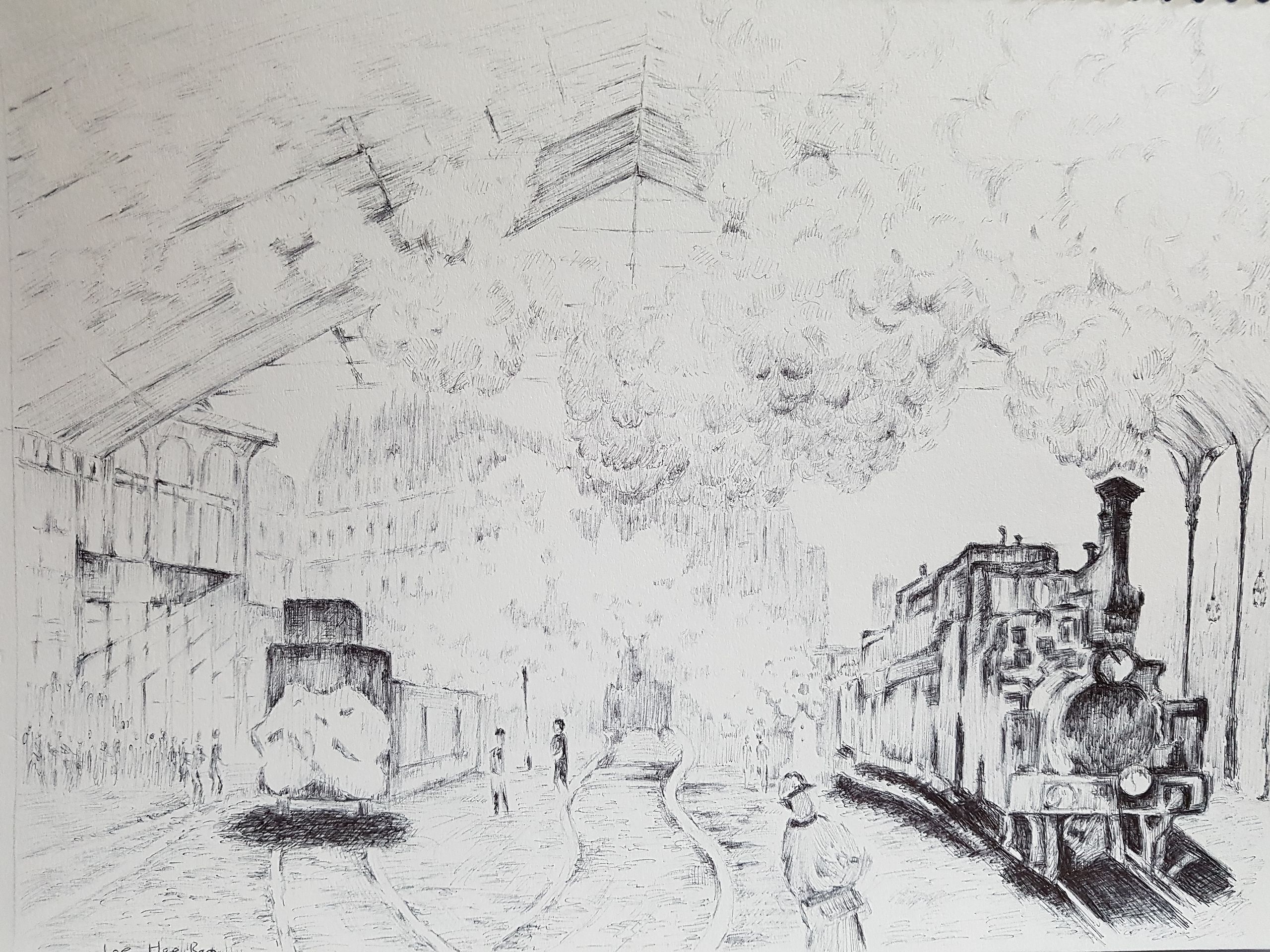 그리다보니 열차와 열차사이의 간격이 너무 넓어져 버렸네요천장으 평행선이 조금 어긋나 버렸구요볼펜이라 틀린줄 알면서도 고칠수가 없네요연기를 자연스럽게 그리기가 어려위서 자꾸 손을 대다보니 지저분해졌구요승무원도 너무 옆으로 비스듬하게 그려져서 이것 저것 맘에 들지 않았지만 그래도 올려봅니다샘께서 좋은말씀 해주시길 바랍니다지난번 좋은 말씀 해주셔서 힘이 많이 납니다감사합니다^^