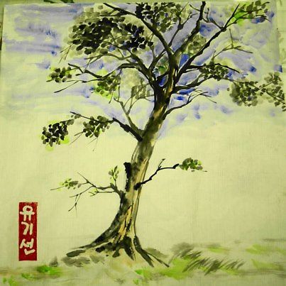 나무에 색을 넣어봤습니다. 잎이 가지에 붙는것을 신경써서 그려봤는데, 전과 비교해서 좀 나아졌는지요?