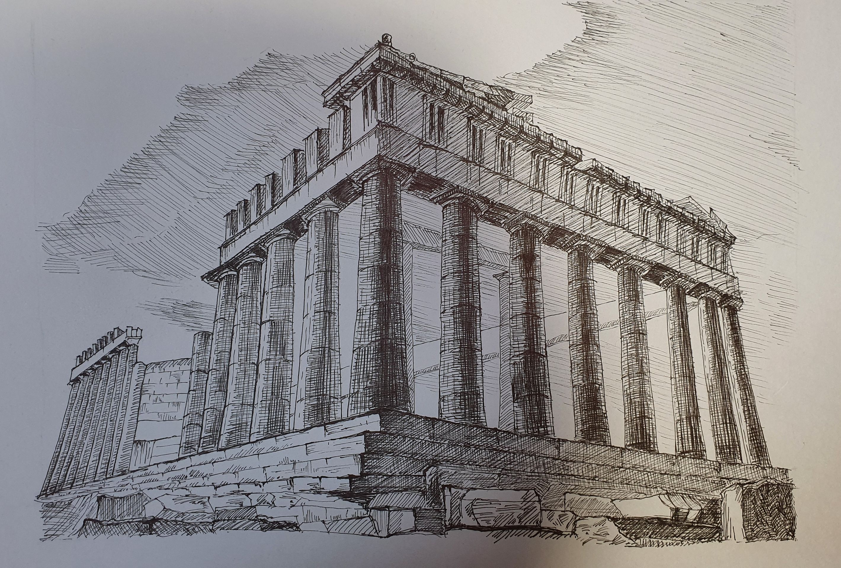 앞에 기둥 명암을 너무 진하게 한거 같아요