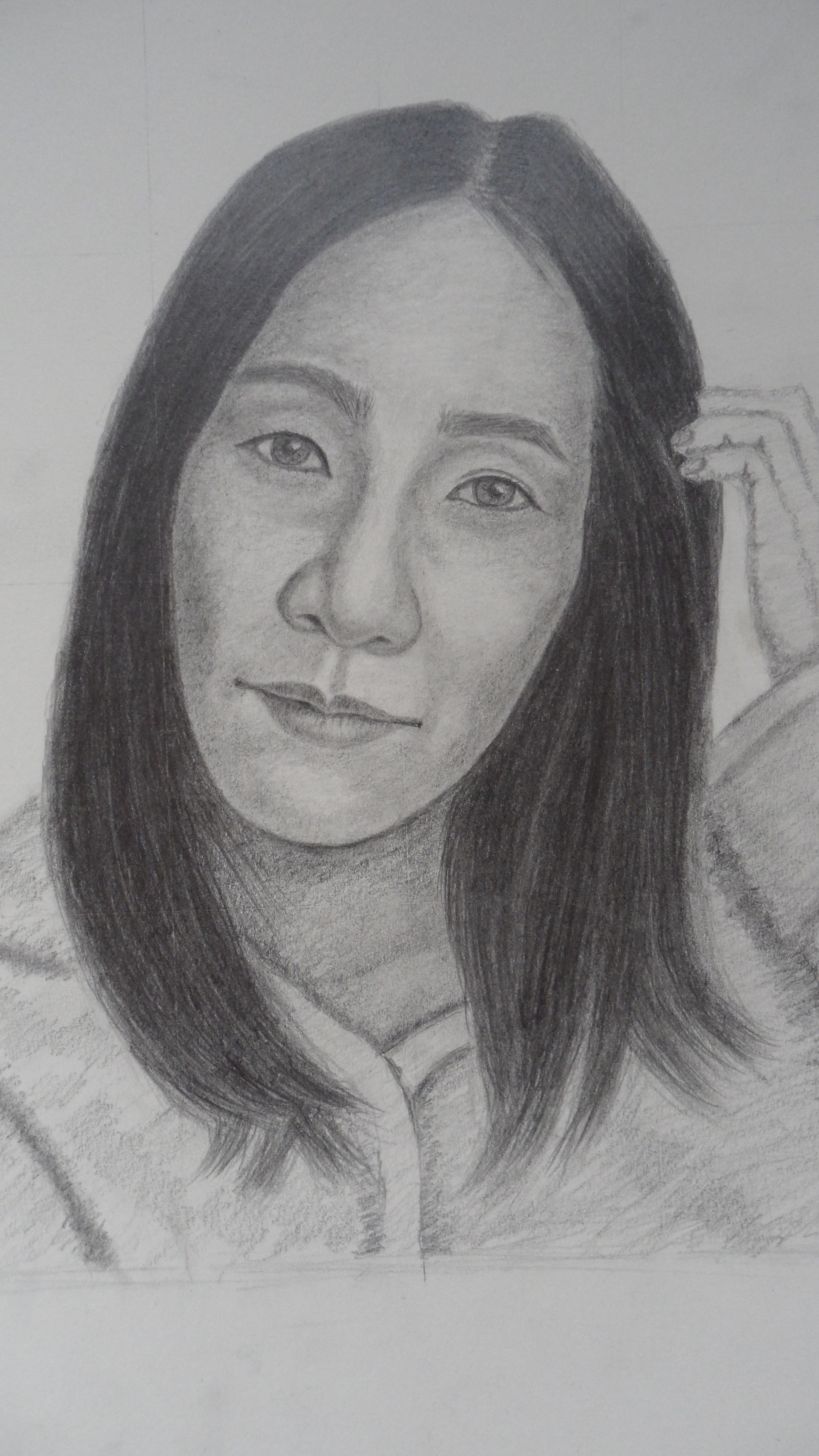 선생님 얼굴을 그렸어요 선생님이 그린것 보고 그렸는데 똑같지 안네요 명암도 너무 시커먼것 같고,아직도 헤메고 있어요 . 조언 부탁합니다.