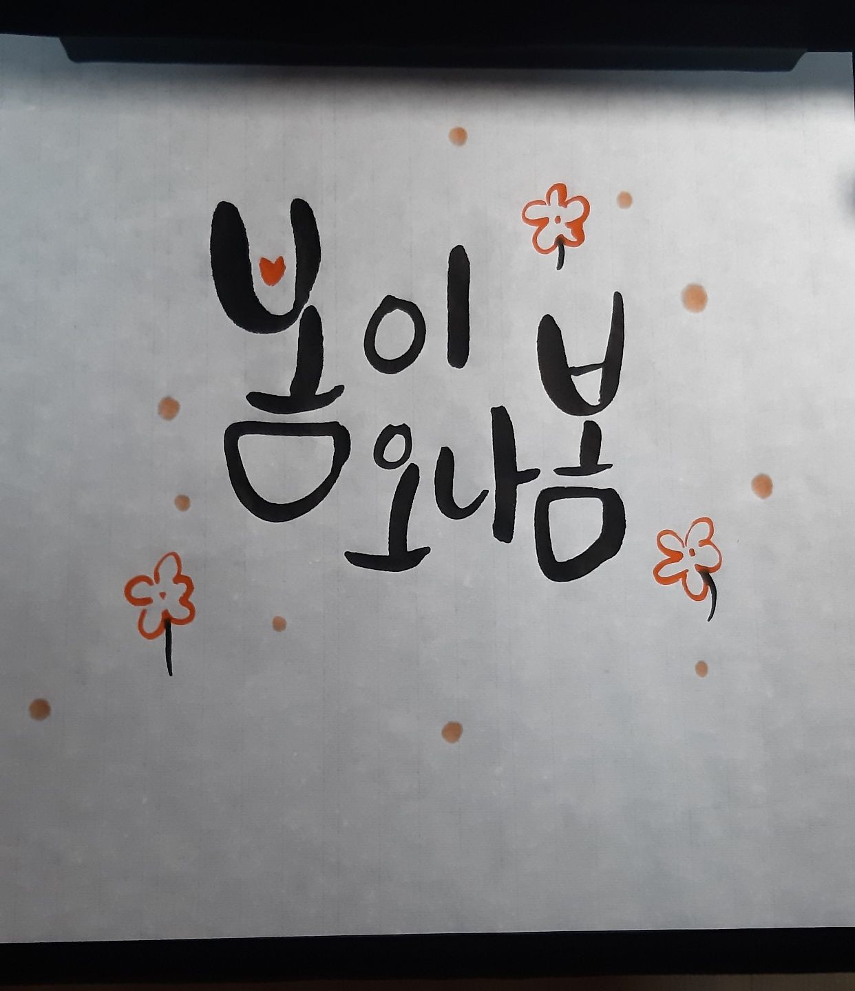 먹물 검정색으로만 쓰다가 주황색도 함께 써보니 캘리에 포인트도 되고 예뻐요