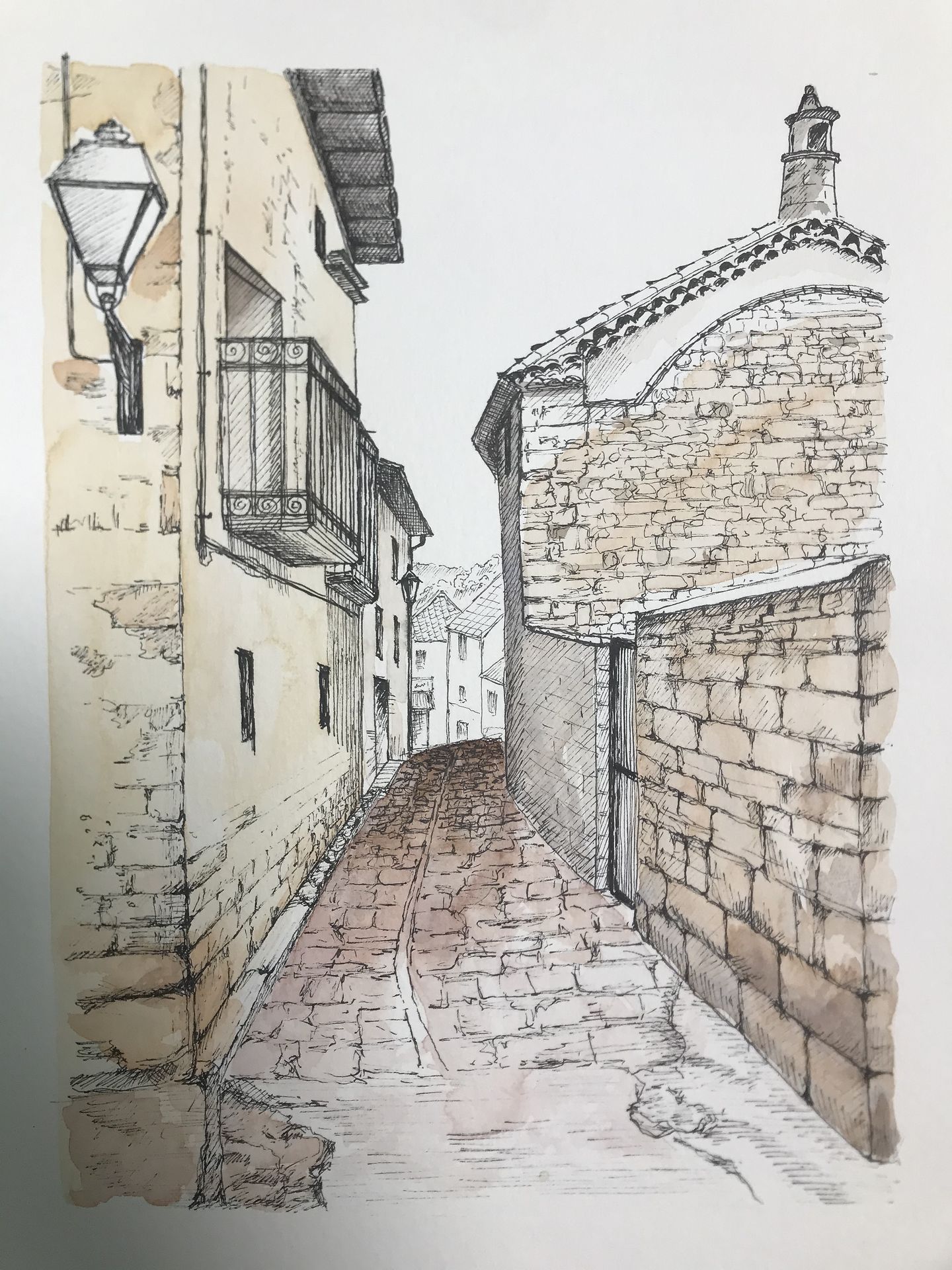 안녕하세요 선생님수채화인줄 모르고 드로잉북에 거의 다.그렸다가 ㅠㅠ. . 다시 그렸습니다.전 왜 수채화용지에 그리라는 그 자막을 놓쳤을까요? ㅋㅋ다시 그리다 보니 저절로 펜선이 터프해지더라구요 돌과 벽돌은 참 이쁜데 제가 그릴때는 엄청난 부담이네요~그래도 (나름)완성은 했으니 튜터링부탁드려봅니다.