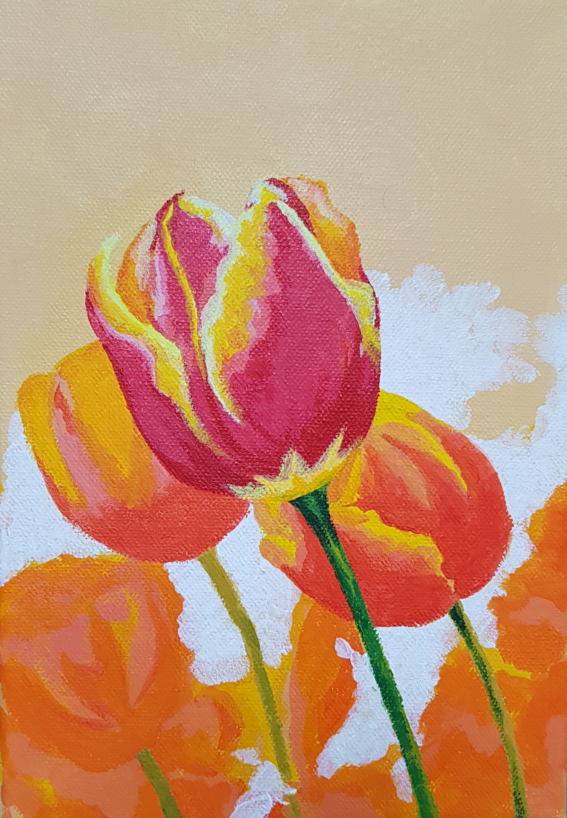 오늘은 색 그라데이션 만들기에 실패했어요. 물이 부족했는지 아니면 제가 너무 느려서 물감이 말라버린탓인지 색이 섞이지 않아서 경계가 너무 선명해서 수정 좀 하려다 과제와는 틀린 튤립을 완성했네요색의 층을 자연스럽게 덮으려면 어떻게 해야하나요?
