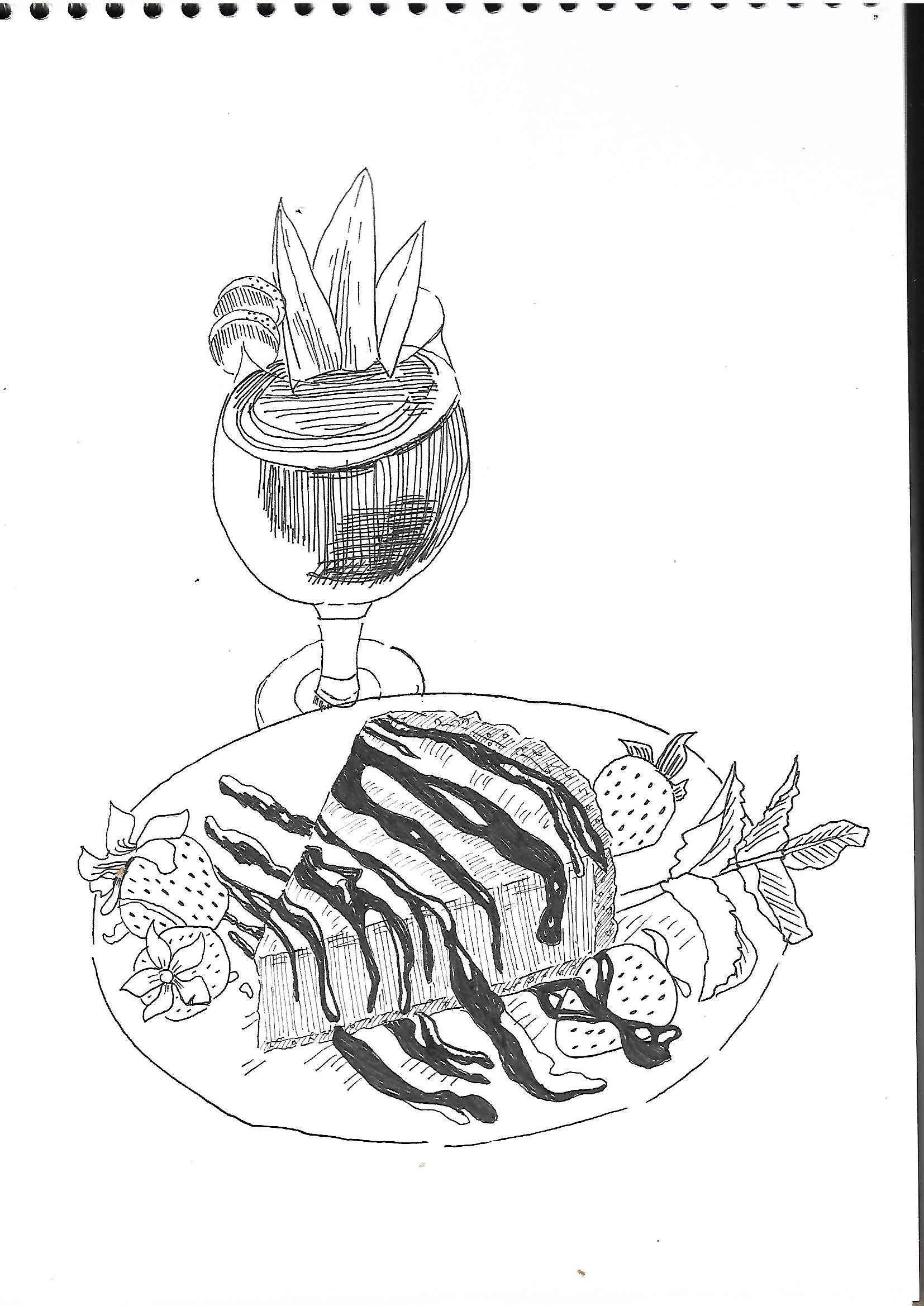 안녕하세요, 선생님!제가 그린 딸기주스와 초코케이크입니다.선생님이 딸기 꼭지 그리실 때 엄청 빨리 그리시는데 엄청 예뻐서 놀랐어요!!제가 그린 건 초코 시럽이 반짝반짝해보이지 않는데, 어떻게 그리면 시럽이 선생님 시럽처럼 반짝이는 것처럼 보일 수 있을까요?감사합니다!