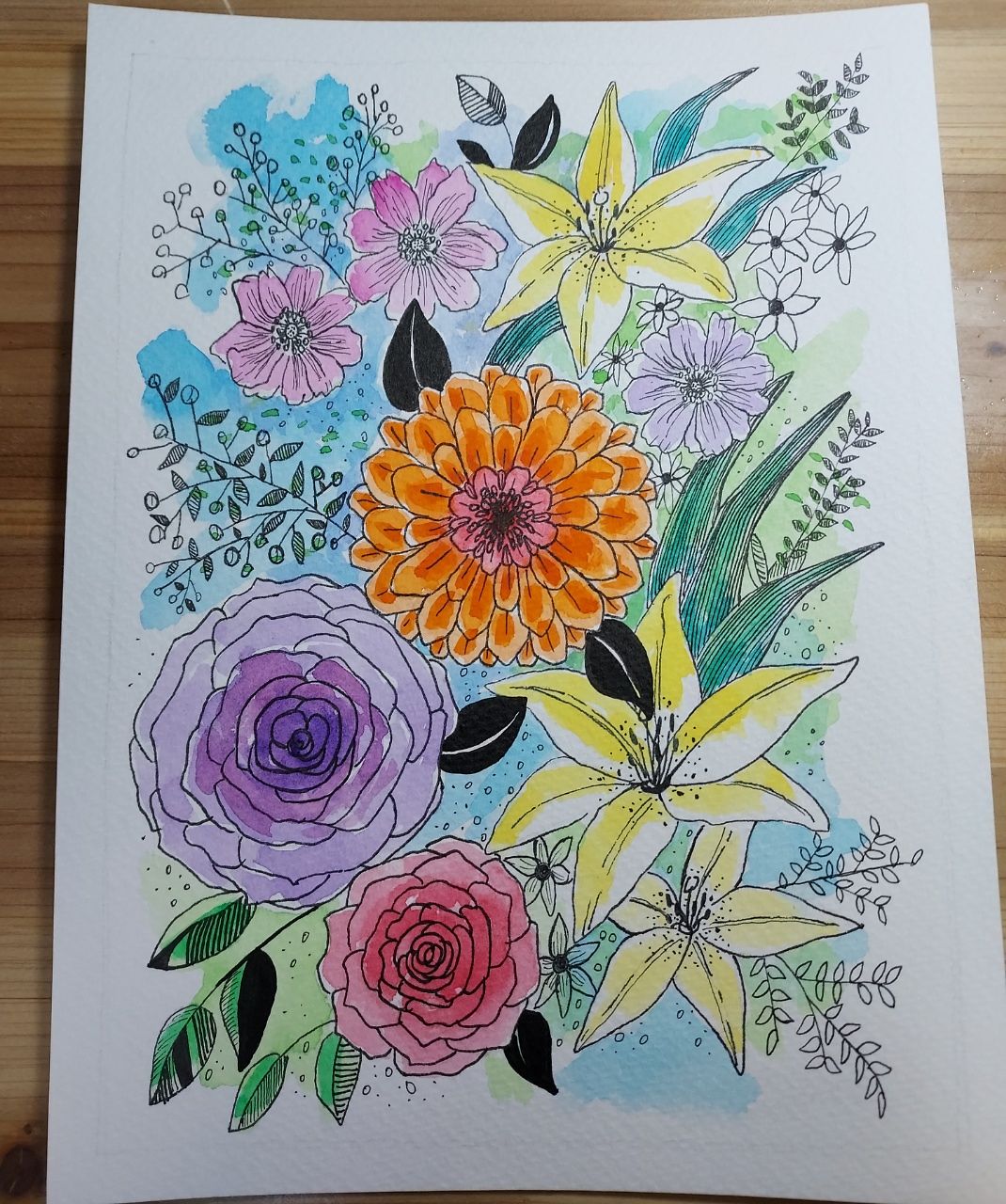 여러 꽃을 모아서 그리니 그림이 멋있어요~~