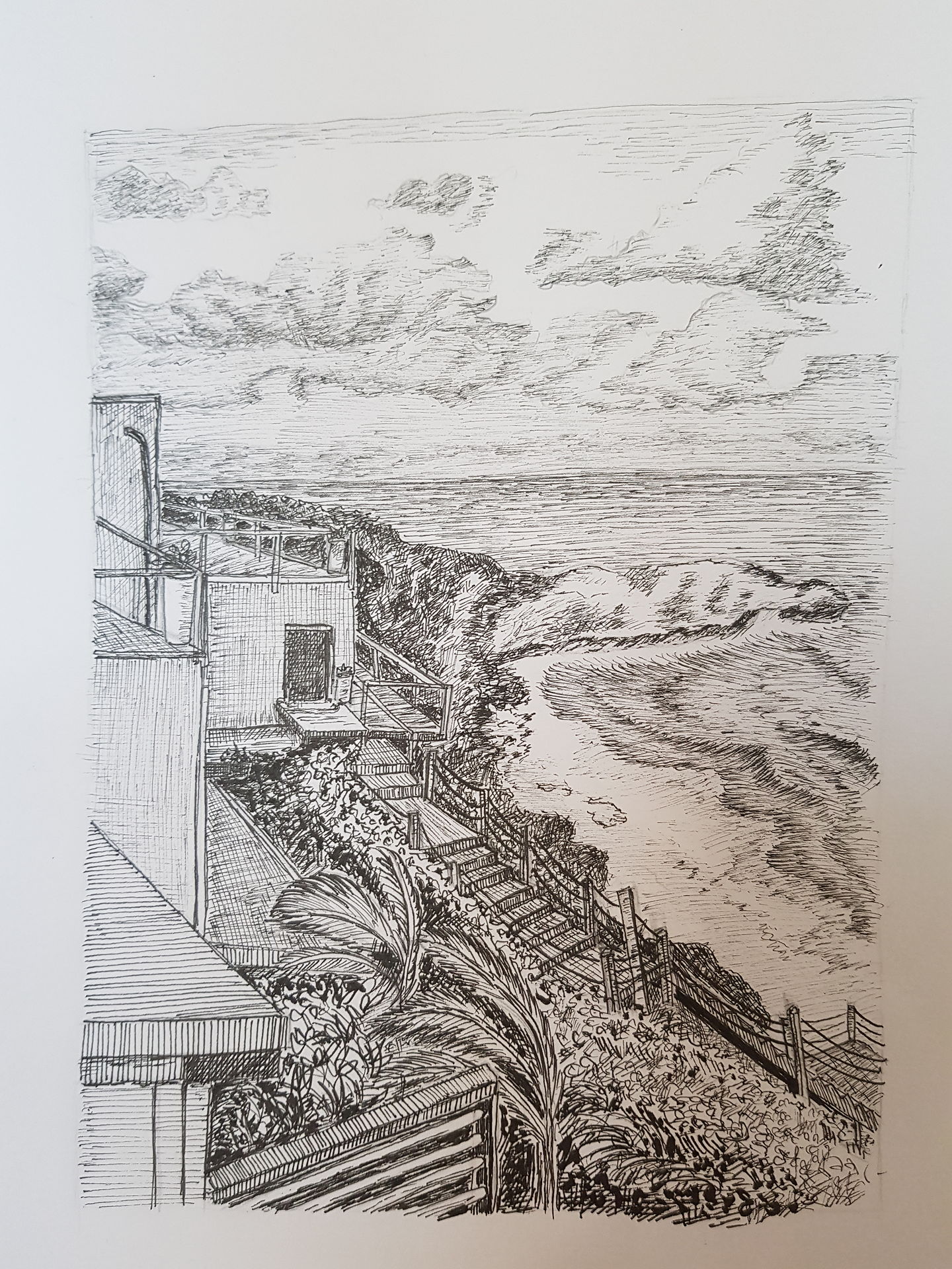 섬세한선 파도표현이 어렵네요ㅎㅎ구름이 너무거칠게 그려져서 이그림 두번 그렸어요ㅎㅎ두번째는 혼자 그려 보려했는데 역시 어렵네요ㅜㅜ부족한 부분이 곳곳에 보이지만 올려봅니다^^그리고 바다와 풀숲에 채색을 조금넣어봄 어떨까 싶은데 괜찮을까요?^^