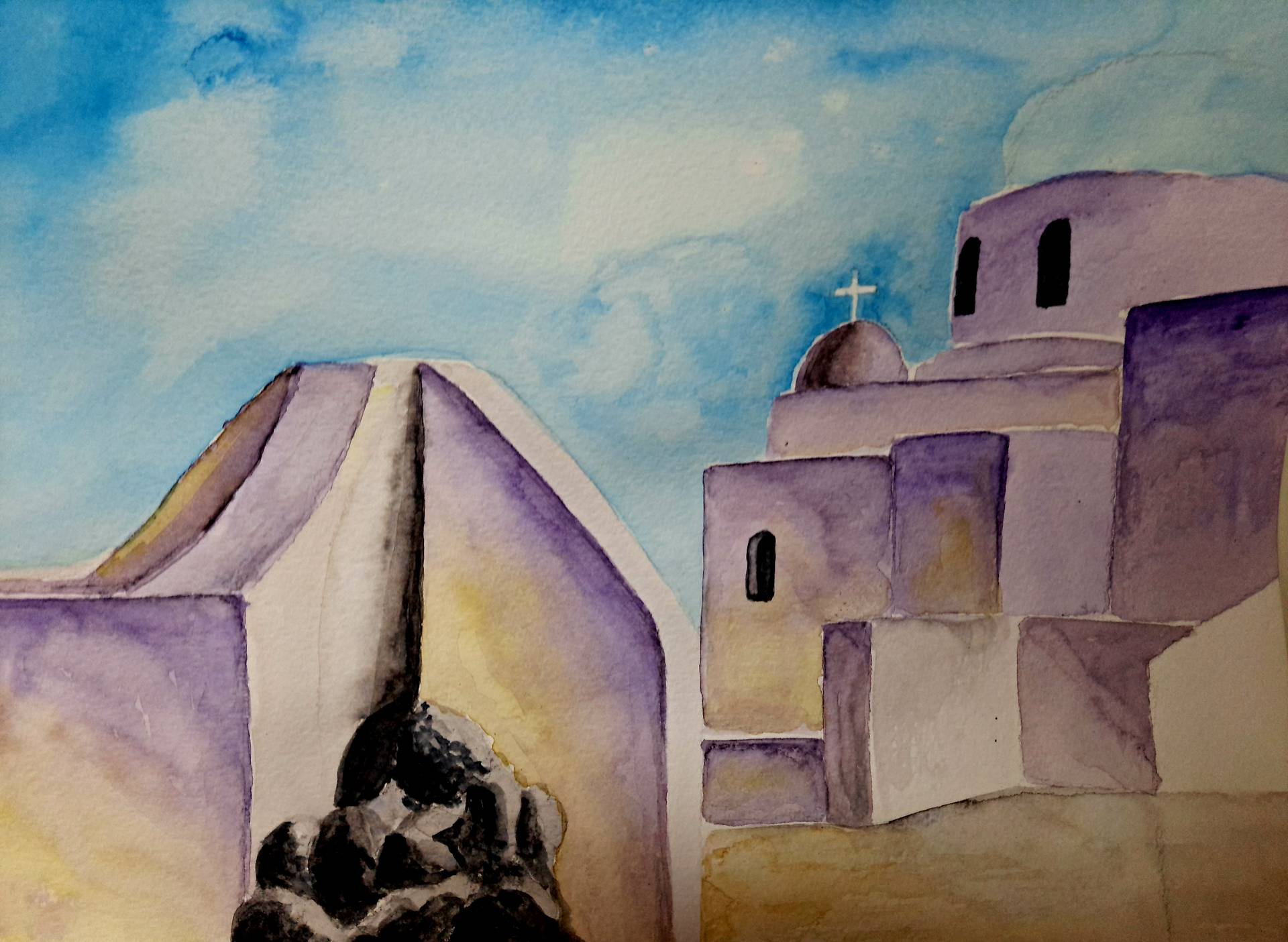 물바르고 쓱쓱 바르면 될거같은데 막상 해보면 쉽지 않네요. 물이 번져나가고 색이 섞이며 뻗어나가는걸 통제하기가 어렵고요, 대부분 건물 면이 흰색이라 약간씩 색의 변화를 주려고 해봤으나 흰색 물체가 더 까다로운거같아요. 물바르고 하는거라 오히려 외곽면 마무리도 어려운거같습니다. 한번 더 새로해볼까하다가 일단 올려드립니다.