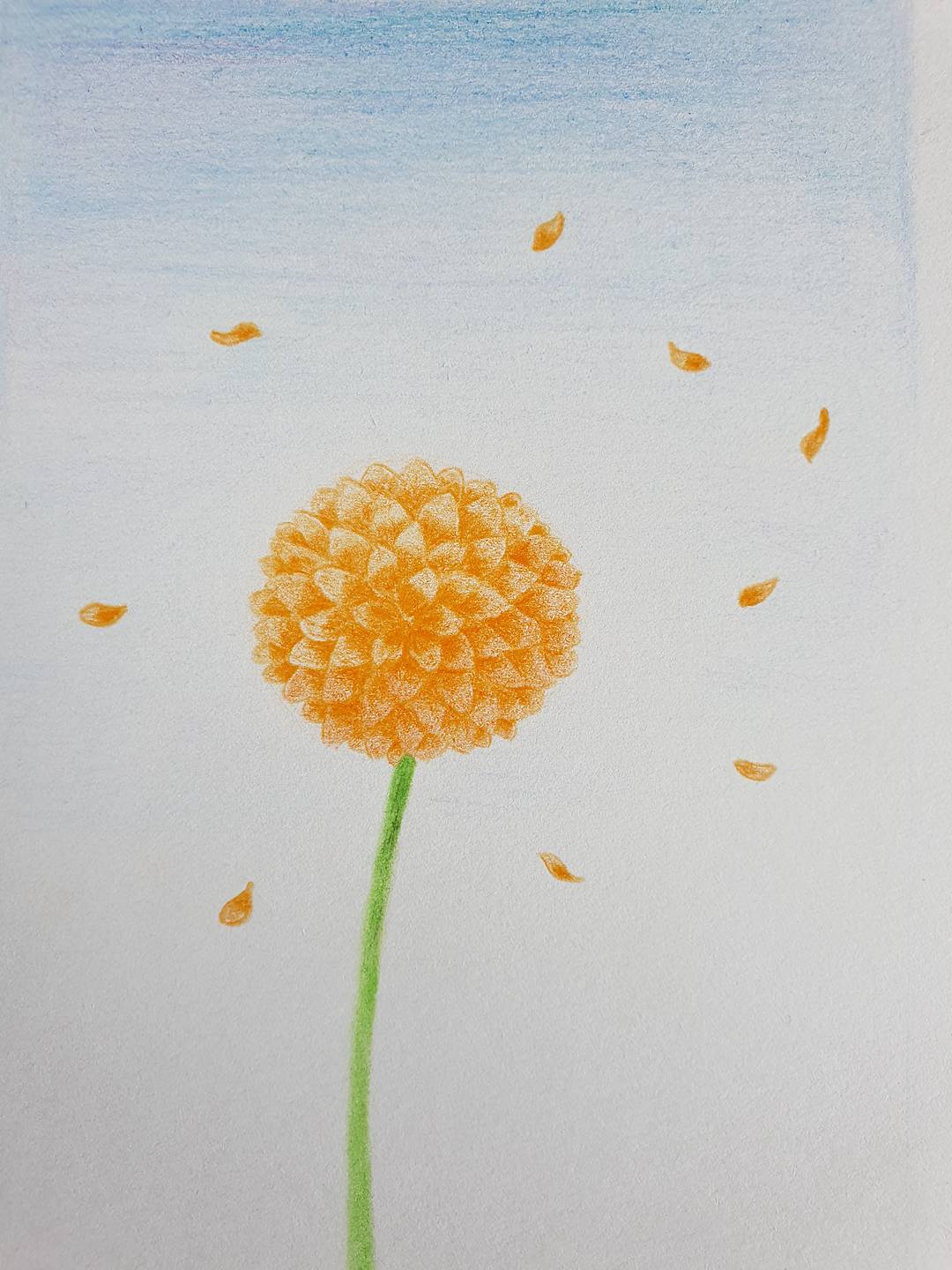 안녕하세요 선생님5주차 수업입니다원을 그리고 중앙에 꽃잎 5장을 그리고 꽃잎 사이사이에 또다른 꽃잎을 그리고꽃잎 경계부분을 진하게 그리고 그라데이션으로 표현하고구의 명암에서처럼1/3지점에 한단계 짙은 색으로 경계부분이 무너지지 않도록 색을 얹고윗부분 지우개로 터치하며 밝은 표현을 하였습니다명암부분이 색의 경계가 좀 더 강하게 보여야 되는데 표현이 부족합니다선생님의 피드백 기다립니다