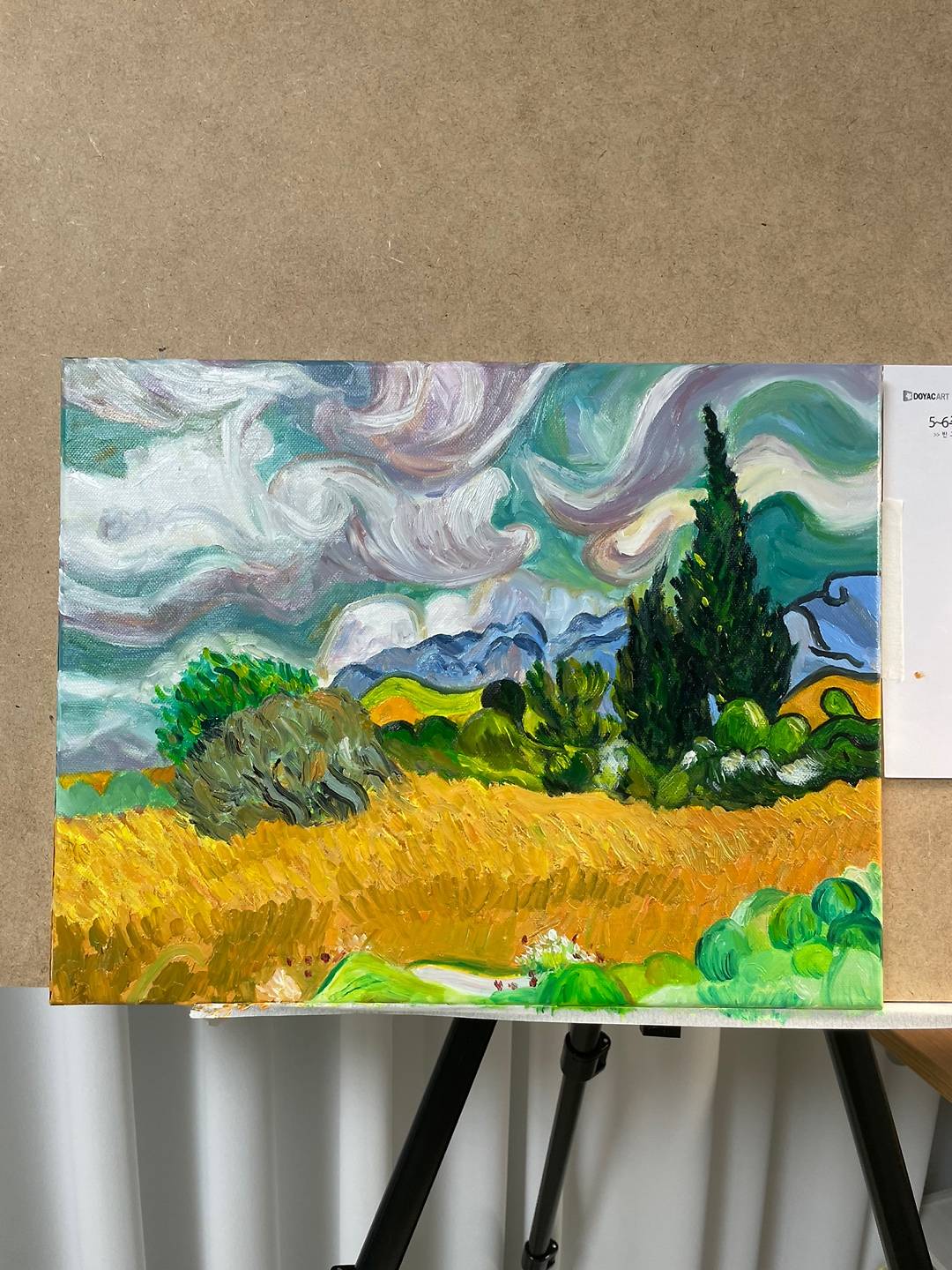 밑바탕을 그리고 그 위에 또 색을 얹어서 다양한 색감을 표핸해봤어요 ㅎㅎㅎㅎ프린트 물 인쇄 된게 색이 너무 흐려서 선생님꺼 보고 하랴 프린트물 보랴 힘이 더 들었어요 ㅎㅎㅎ선생님이 그리시는거 보고 색감을 참고했고 프린트 물로는 형태를 참고했어요 ㅎㅎ
