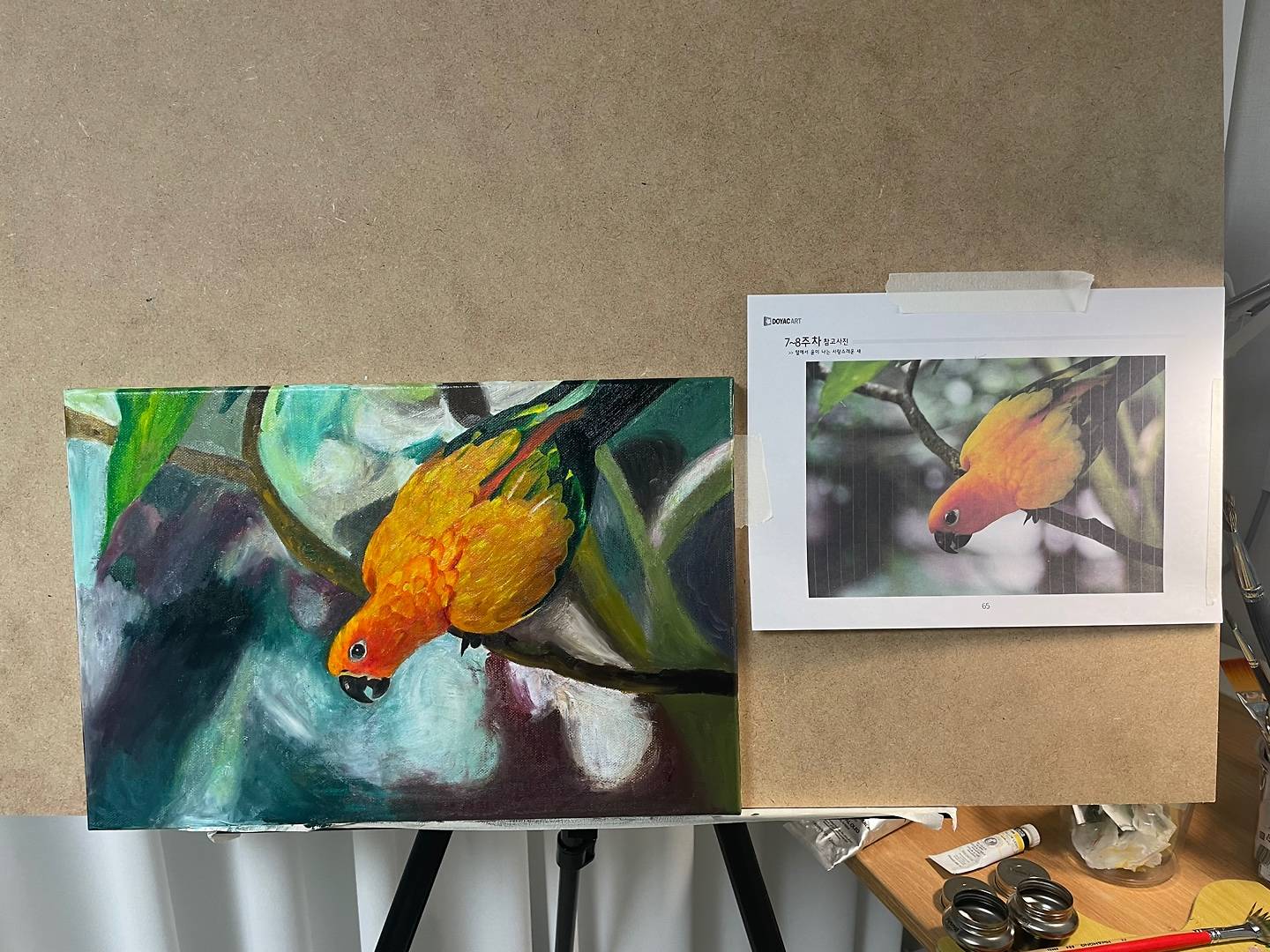 새의 깃털을 이렇게 자세히 뚫어지게 본적은 처음이예요 ㅎㅎㅎ 깃털표현을 해보았는데 평가해주세요 ㅎㅎㅎㅎ 노란색이 칠하면 다른색에 묻혀서 노란색 색감을 내기 힘들었어요 ㅎㅎㅎㅎ