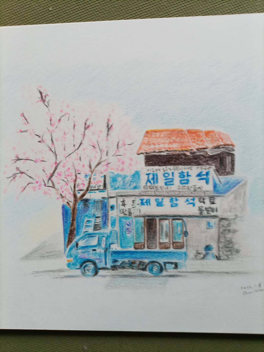 부여의 벚나무가 았는 가게