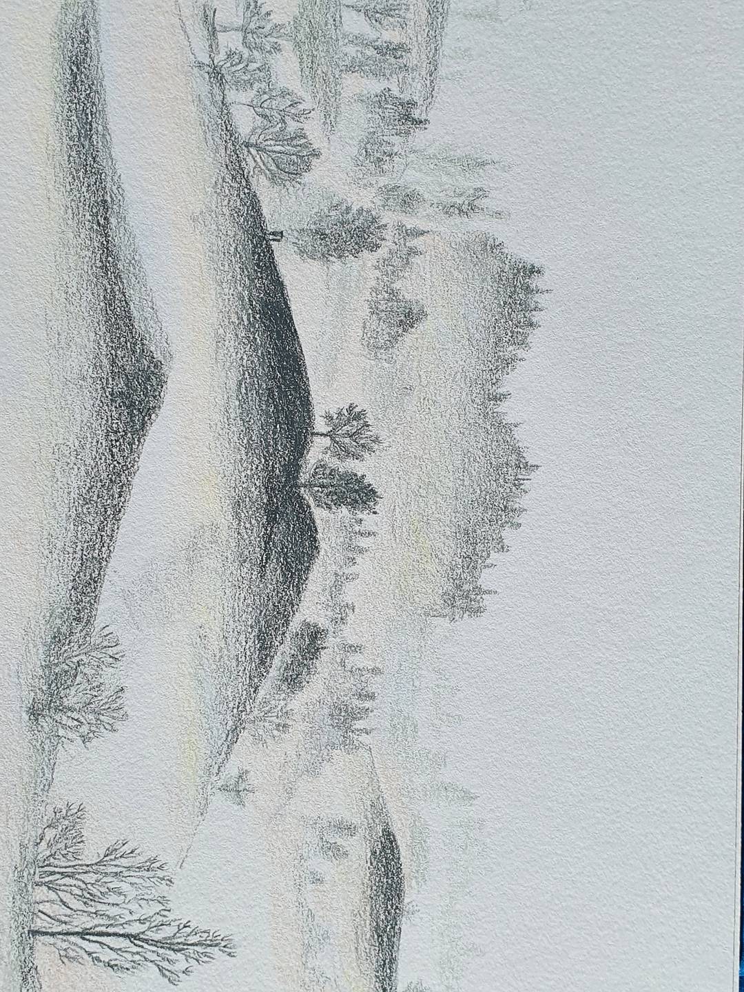 안개풍경을 뒤에 나무를 연하게 해서 다시 그려보았습니다