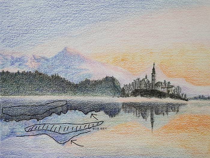 안녕하세요중급 8주차 수업입니다색감이 너무 아름다워 강의 듣는 순간순간 행복한 시간이었습니다강에 비치는 산 그림자의 테두리가 진하게 보이는데 어두운색으로 한번 눌러주었는데도 그림에서는 테두리가 선명하게 보입니다어떻게 수정해야되는지 선생님 조언 기다립니다