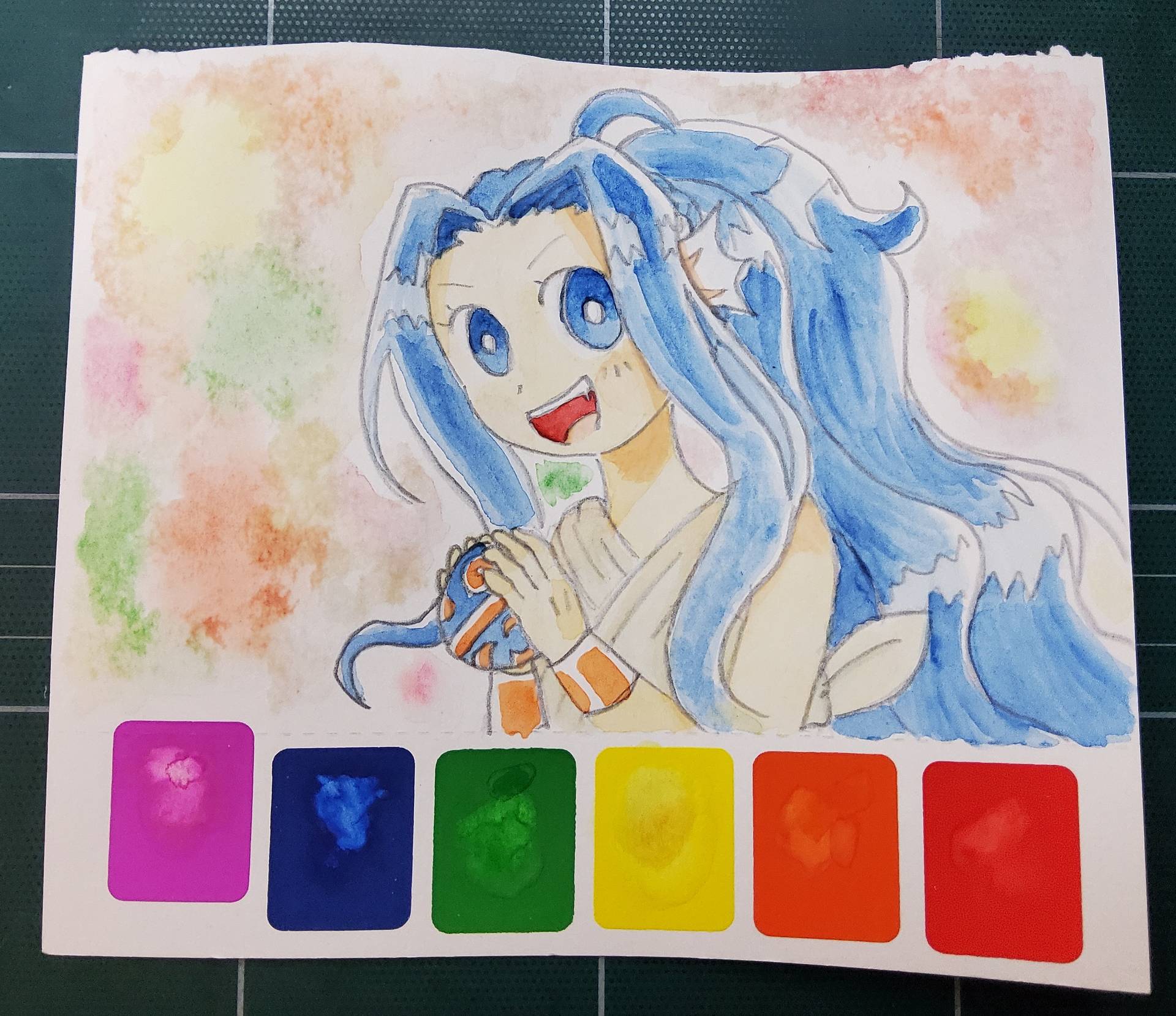 (그림에 나오는 캐릭터는 삼작가님의 '어게인 아린' 웹툰 주인공인 아린입니다 ^^)저는 아직 수채화를 제대로 배워본 단계가 없습니다.지금 그린 이 수채화 그림은 플*잉타*거 에서 파는엽서 수채화 패드의 6가지 색깔만으로 그림을 그려보았습니다!어떤가요? 선생님 저 수채화에 소질 있나요? *_*? 피드백 부탁드립니다!